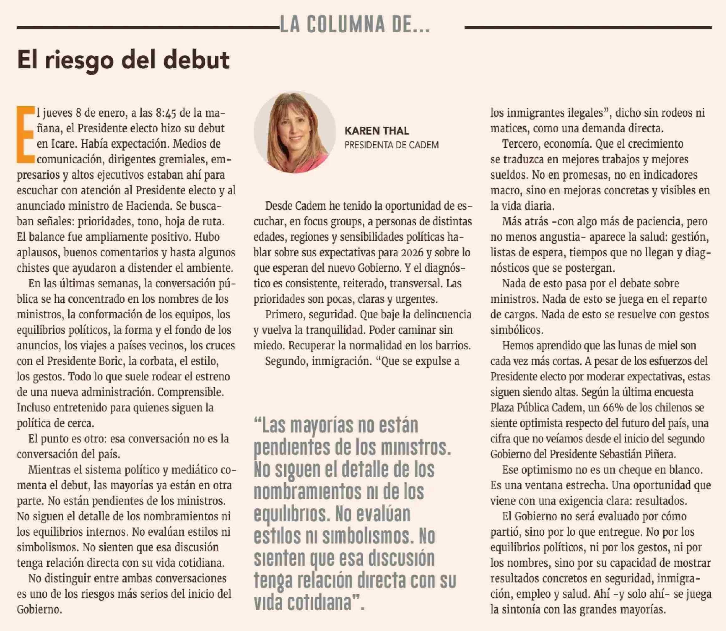 Columnas de Opinión: El riesgo del debut