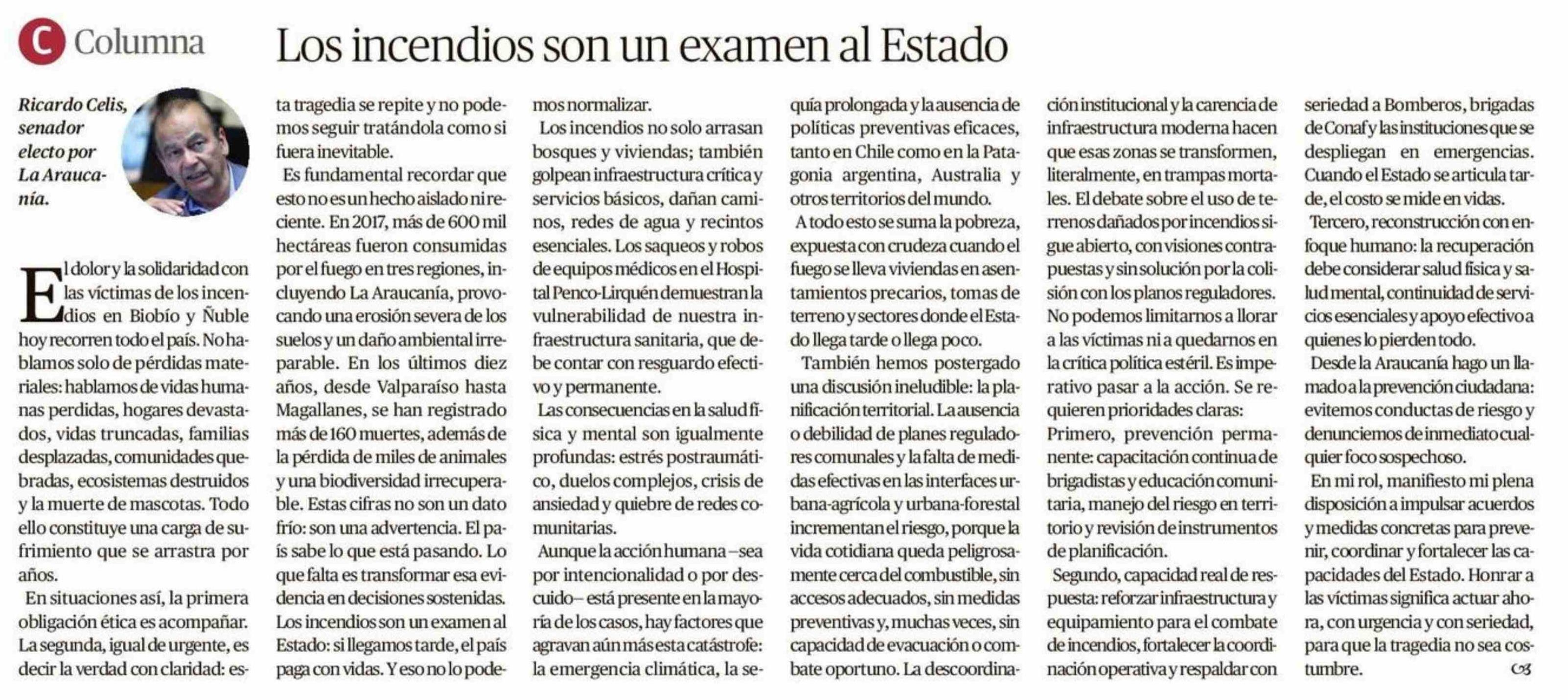 Título: Los incendios son un examen al Estado