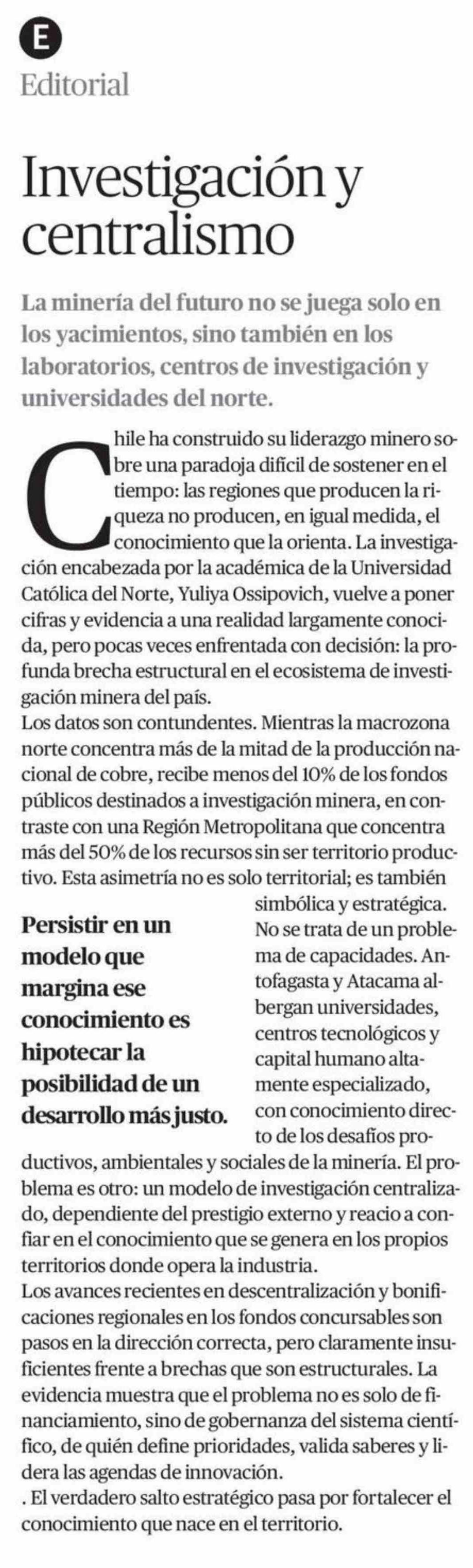 Editorial: Investigación y centralismo