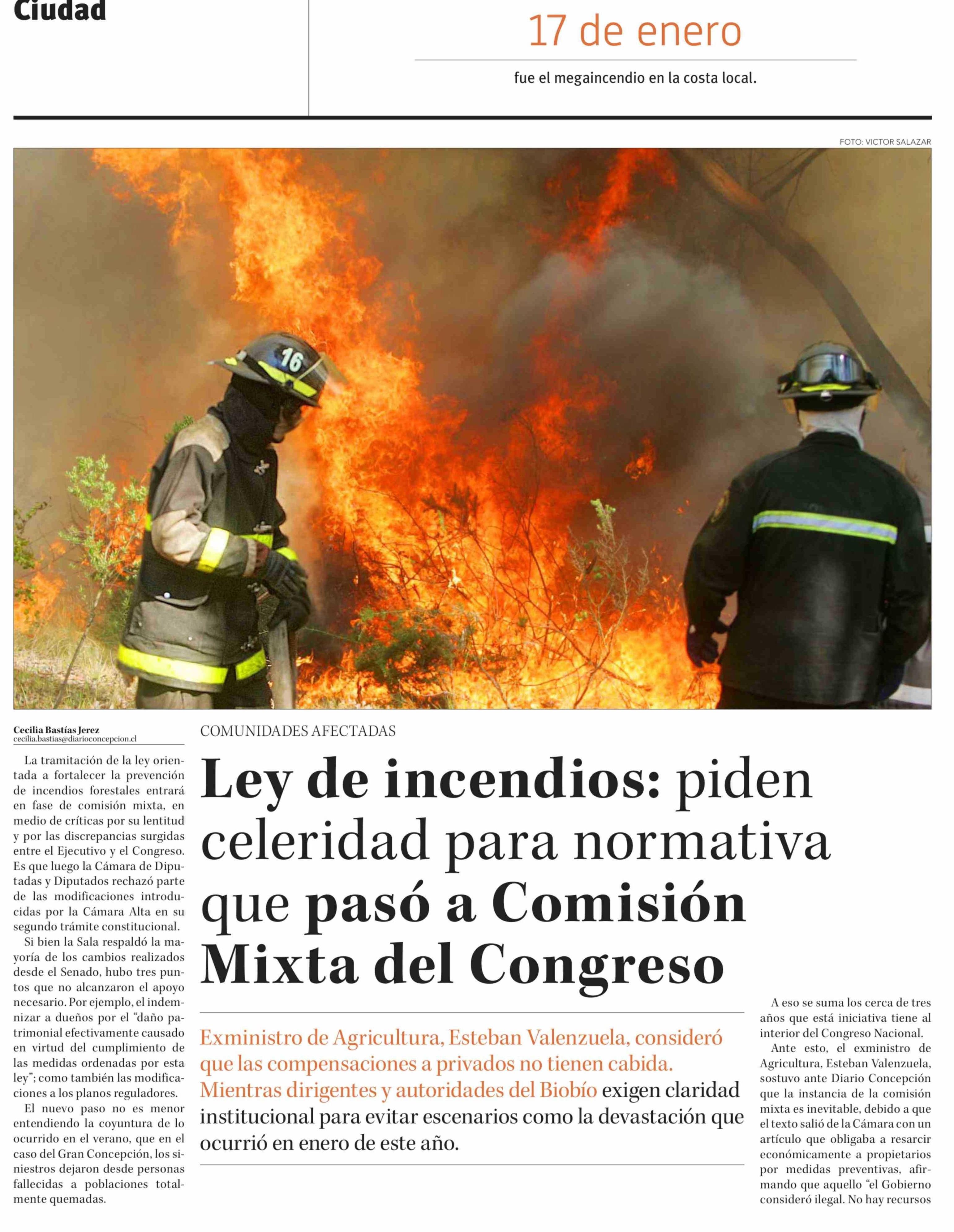 Ley de incendios: piden celeridad para normativa que pasó a Comisión Mixta del Congreso
