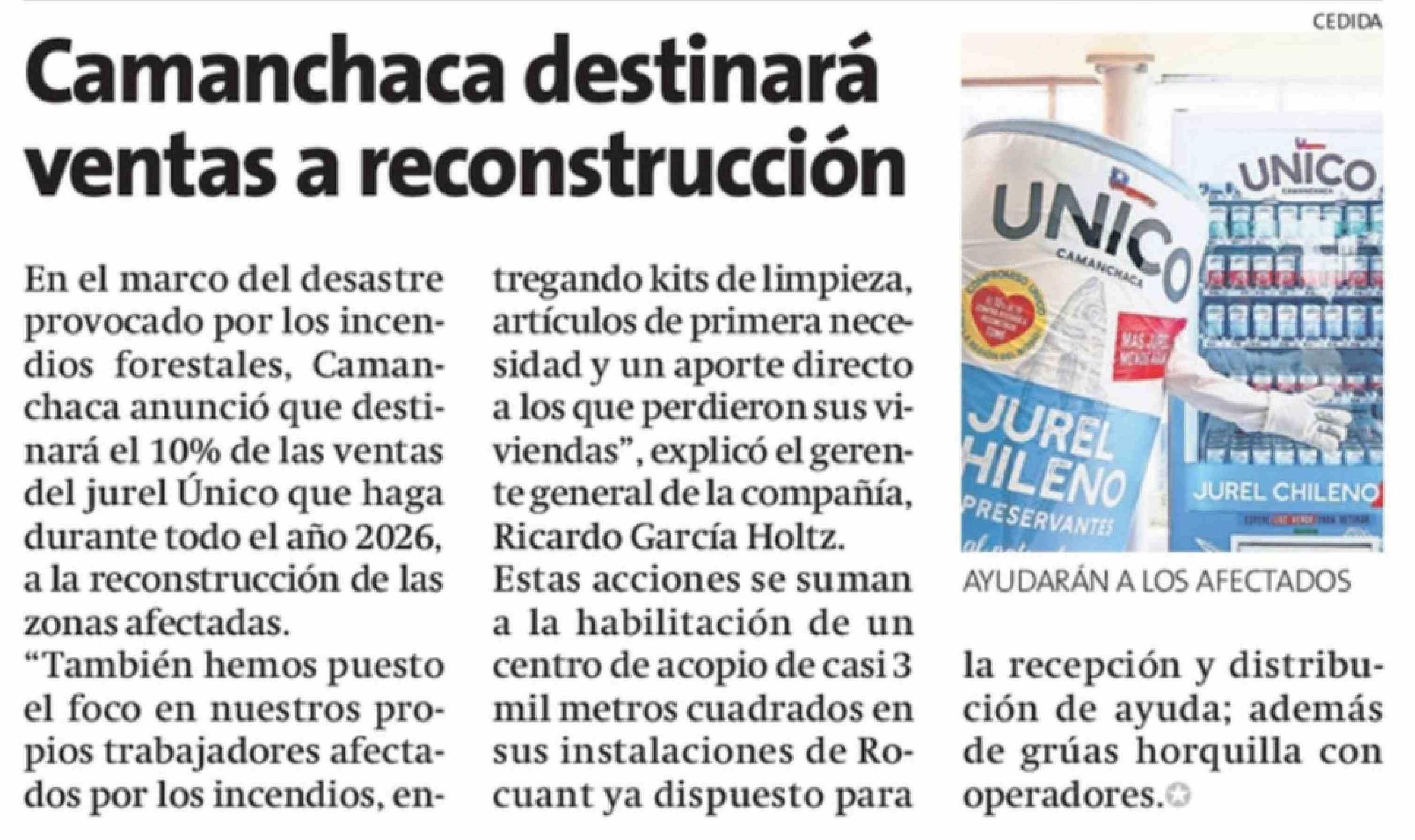 Camanchaca destinará ventas a reconstrucción