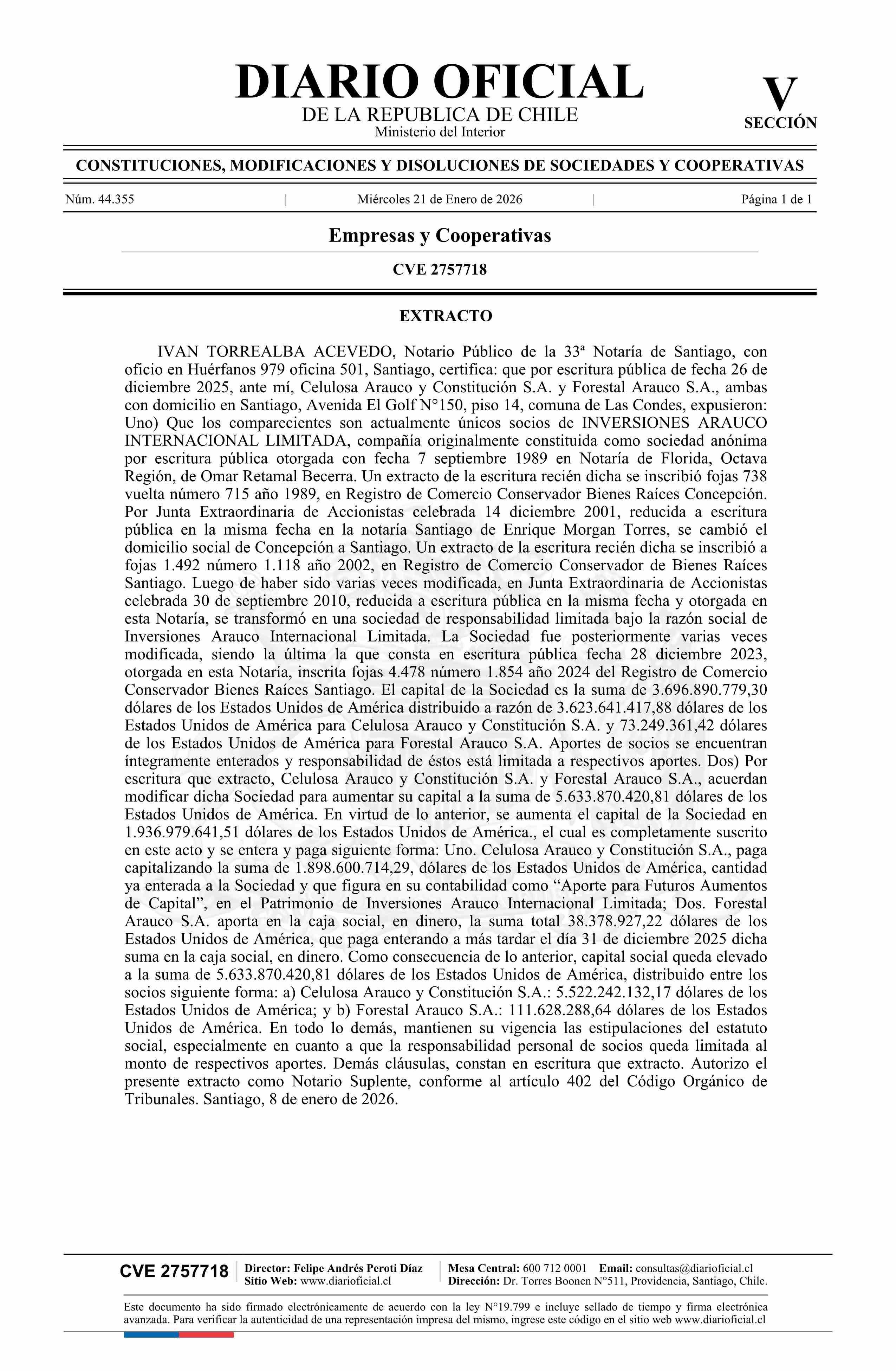 INVERSIONES ARAUCO INTERNACIONAL LIMITADA 96.563.550-5*