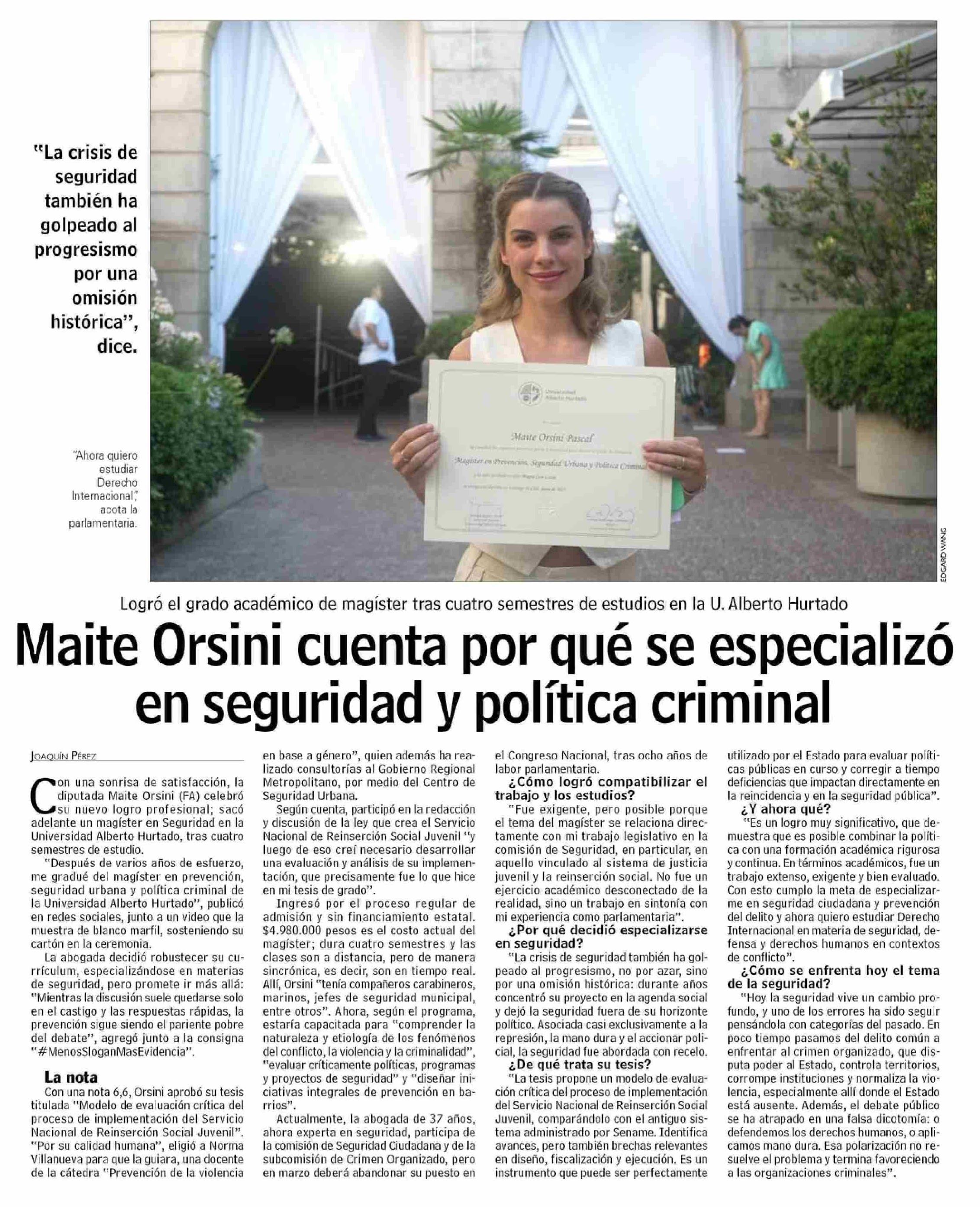 Maite Orsini cuenta por qué se especializó en seguridad y política criminal