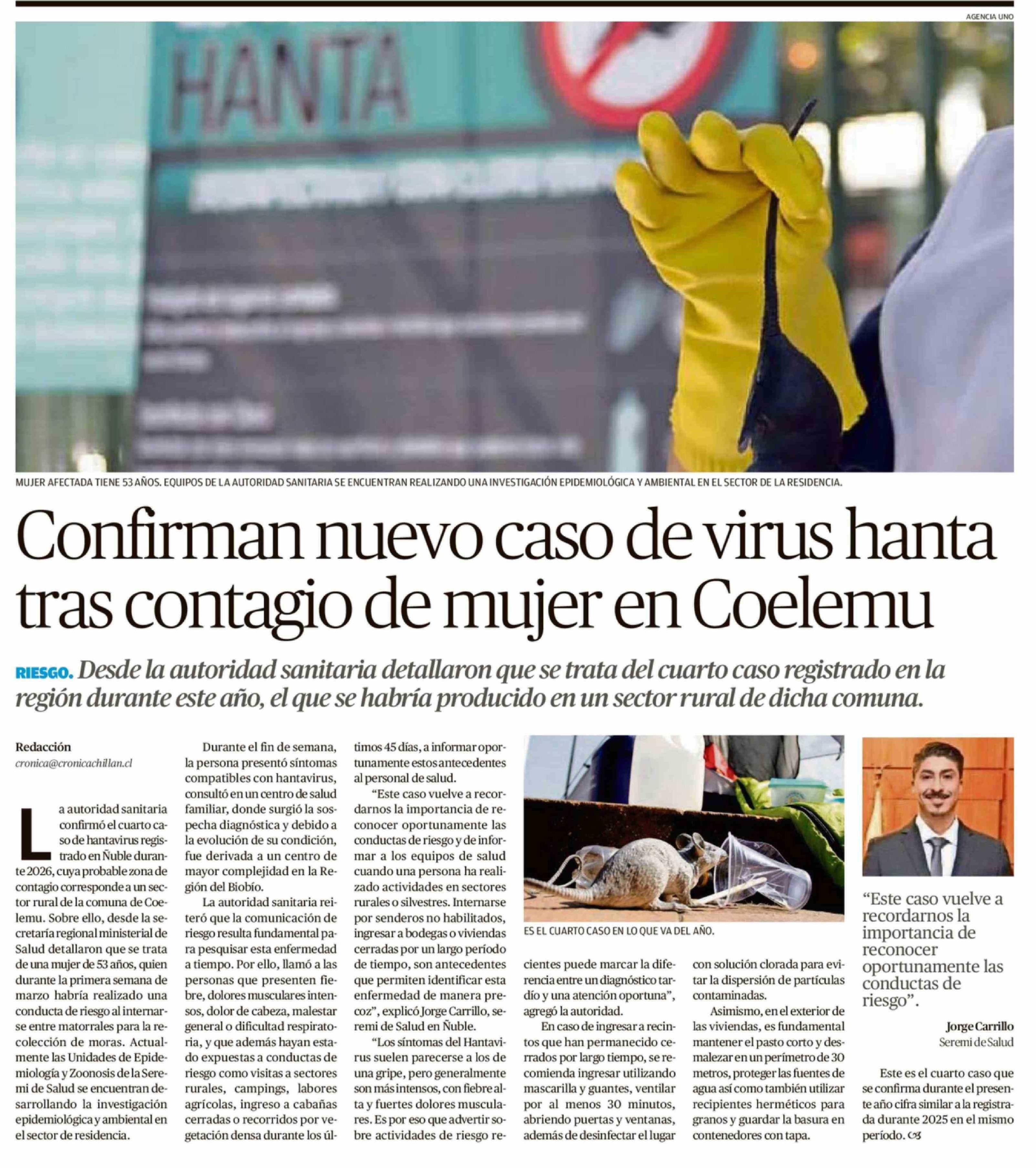 Título: Confirman nuevo caso de virus hanta tras contagio de mujer en Coelemu
