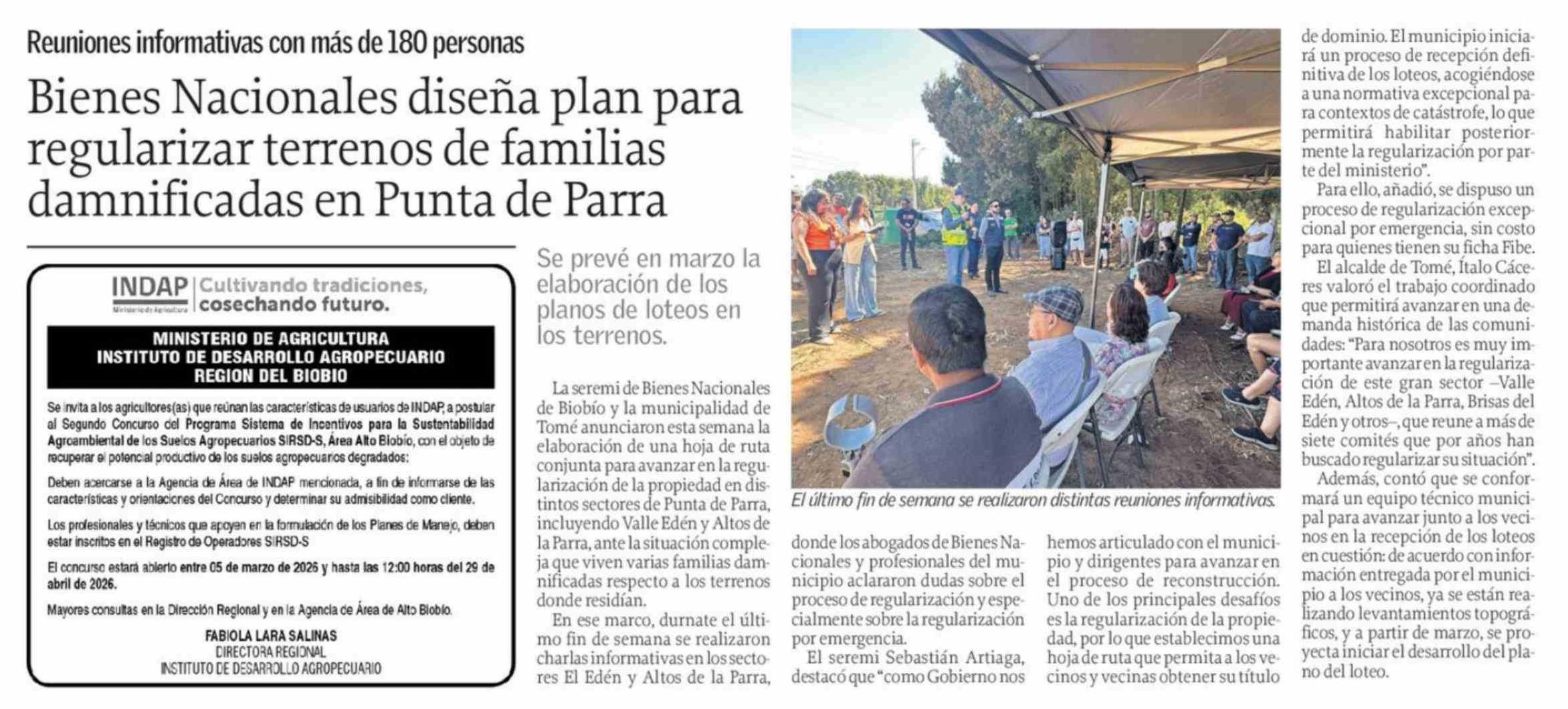 Bienes Nacionales diseña plan para regularizar terrenos de familias damnificadas en Punta de Parra