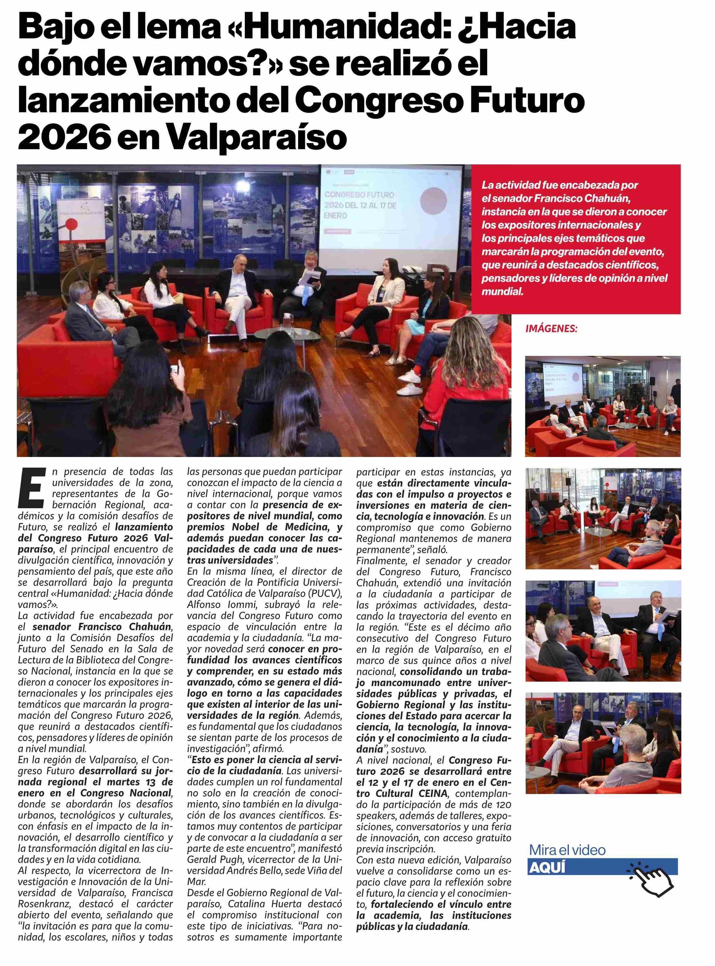Bajo el lema «Humanidad: ¿Hacia dónde vamos?» se realizó el lanzamiento del Congreso Futuro 2026 en Valparaíso