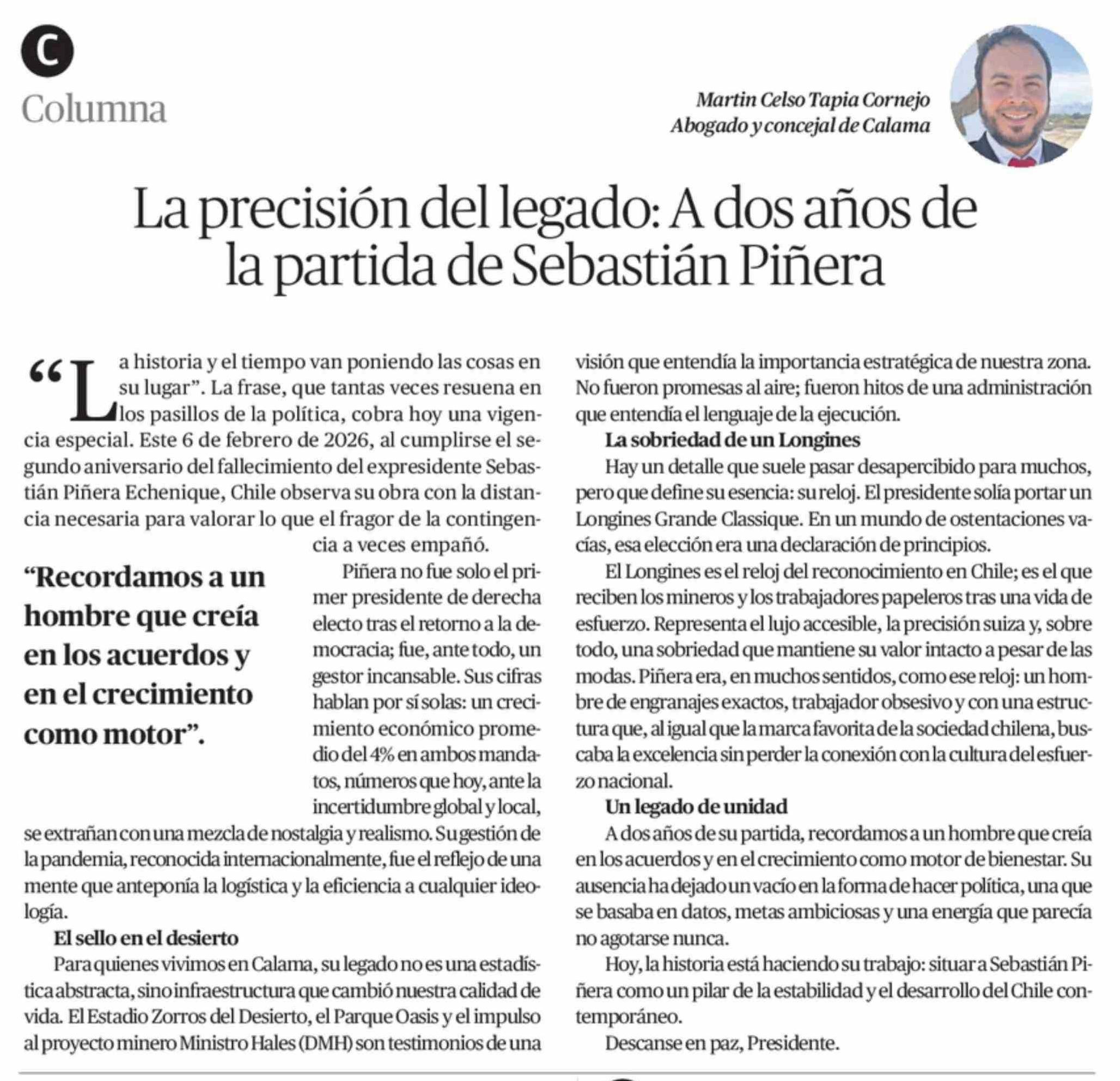 Columnas de Opinión: La precisión del legado: A dos años de la partida de Sebastián Piñera