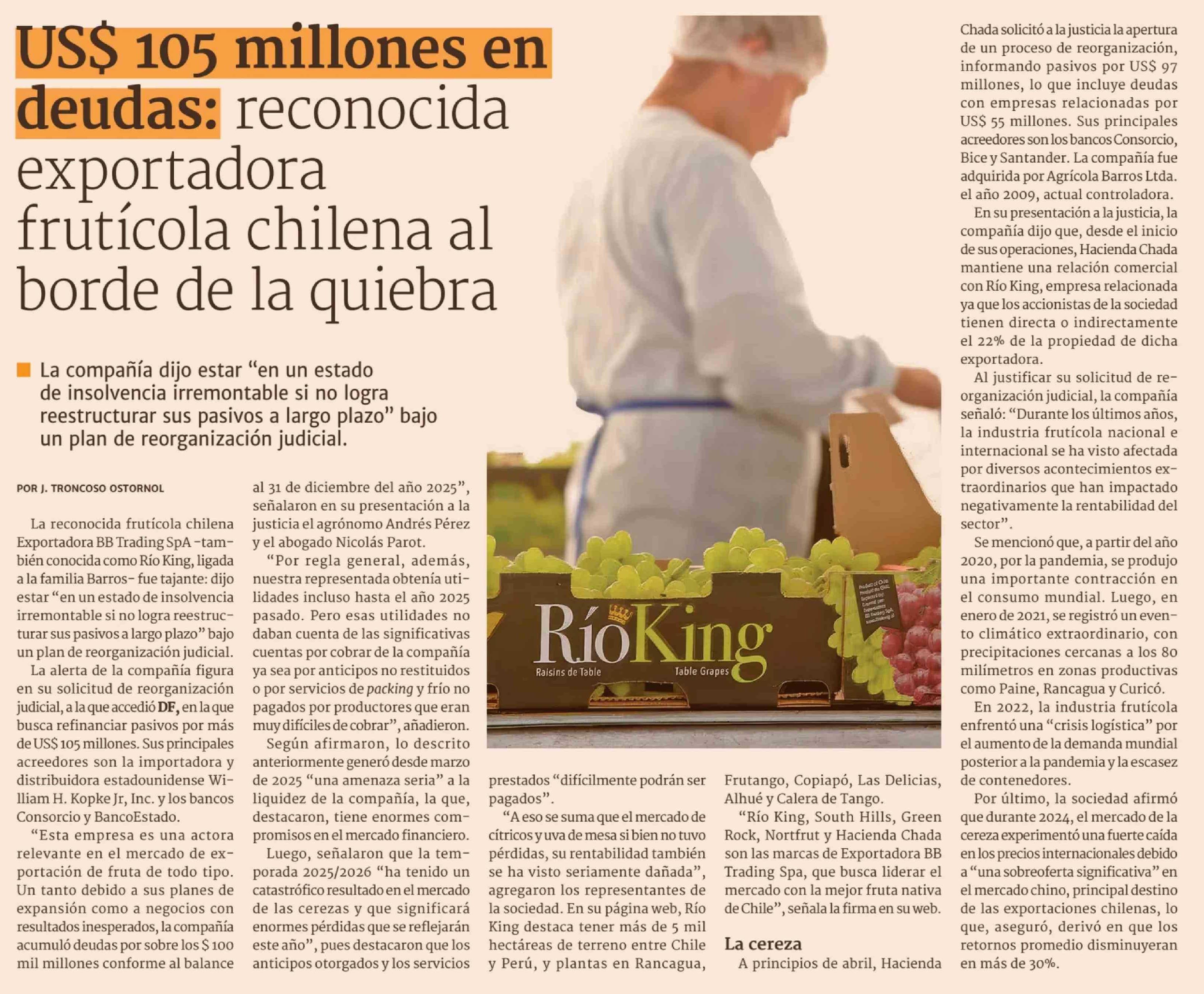Título: US$ 105 millones en deudas: reconocida exportadora frutícola chilena al borde de la quiebra