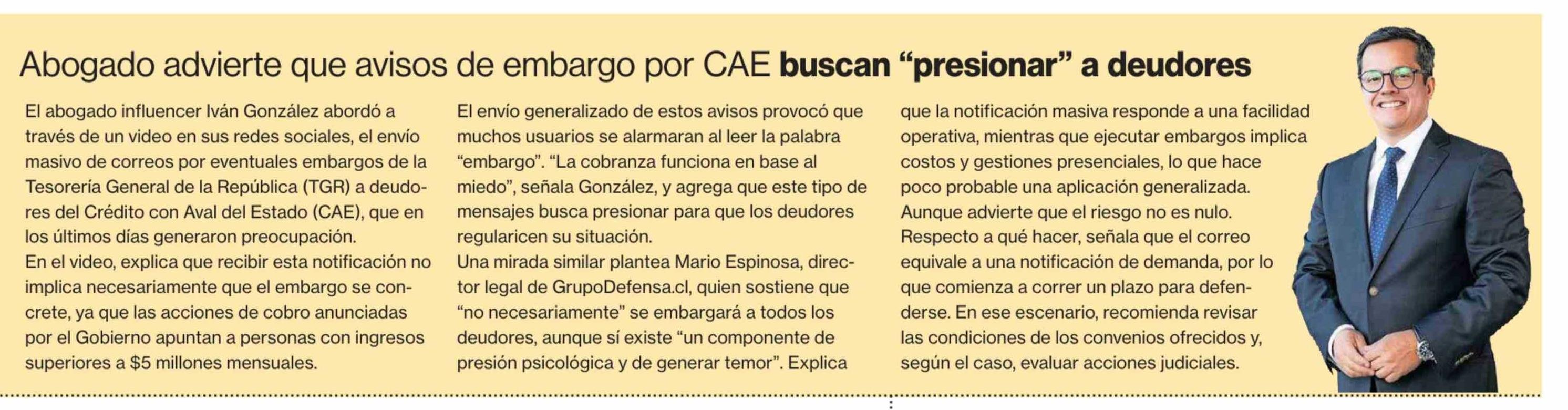 Abogado advierte que avisos de embargo por CAE buscan "presionar" a deudores