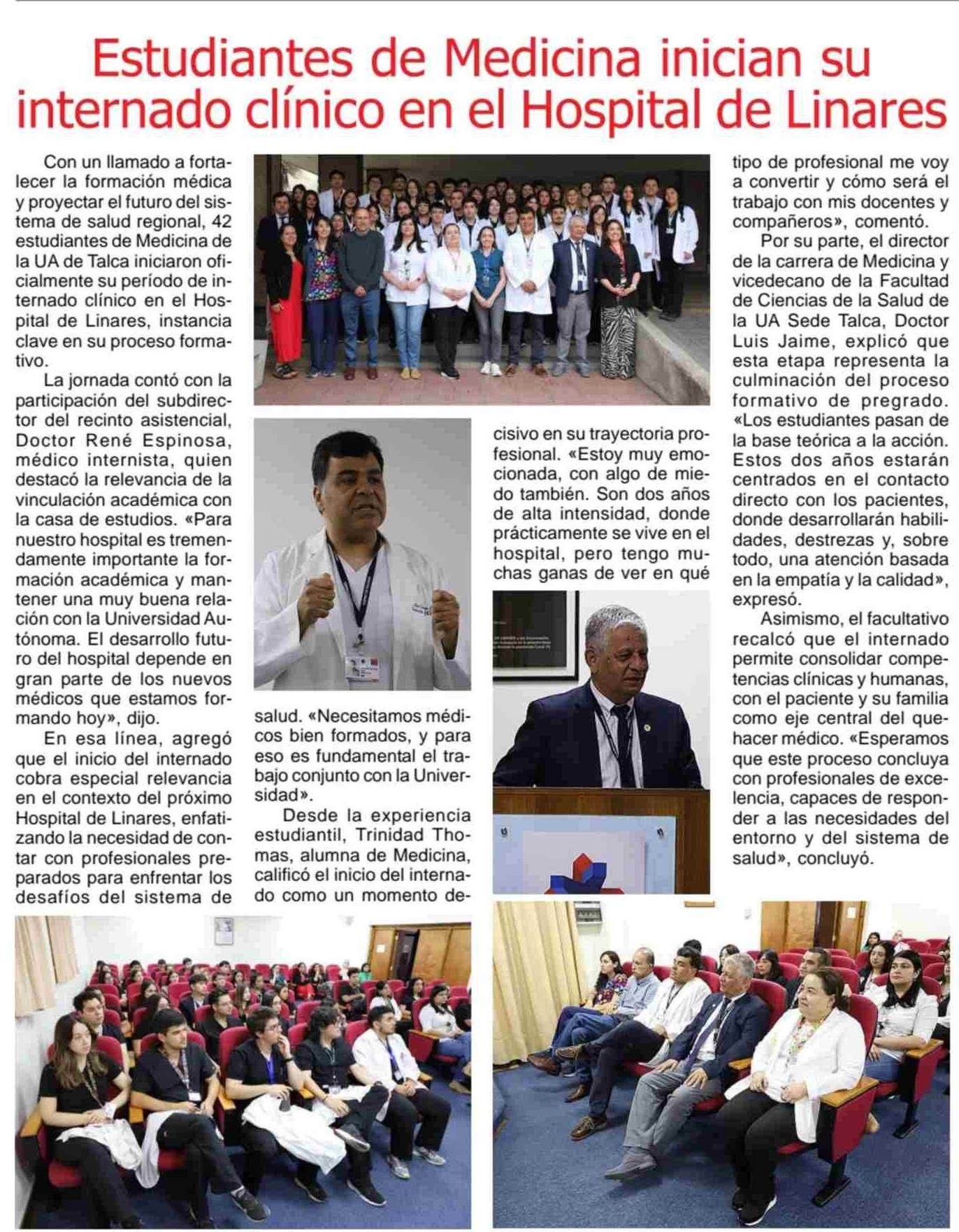 Estudiantes de Medicina inician su internado clínico en el Hospital de Linares