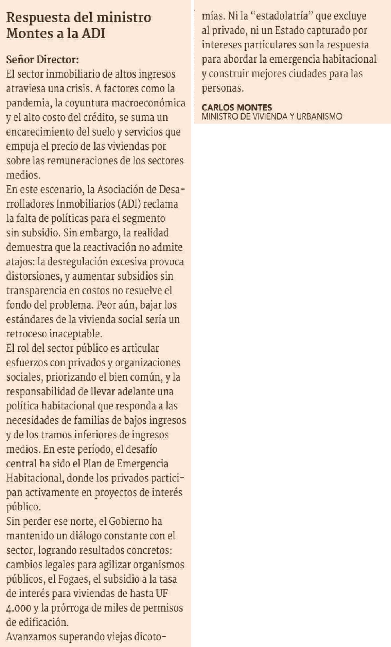 Cartas: Respuesta del ministro Montes a la ADI