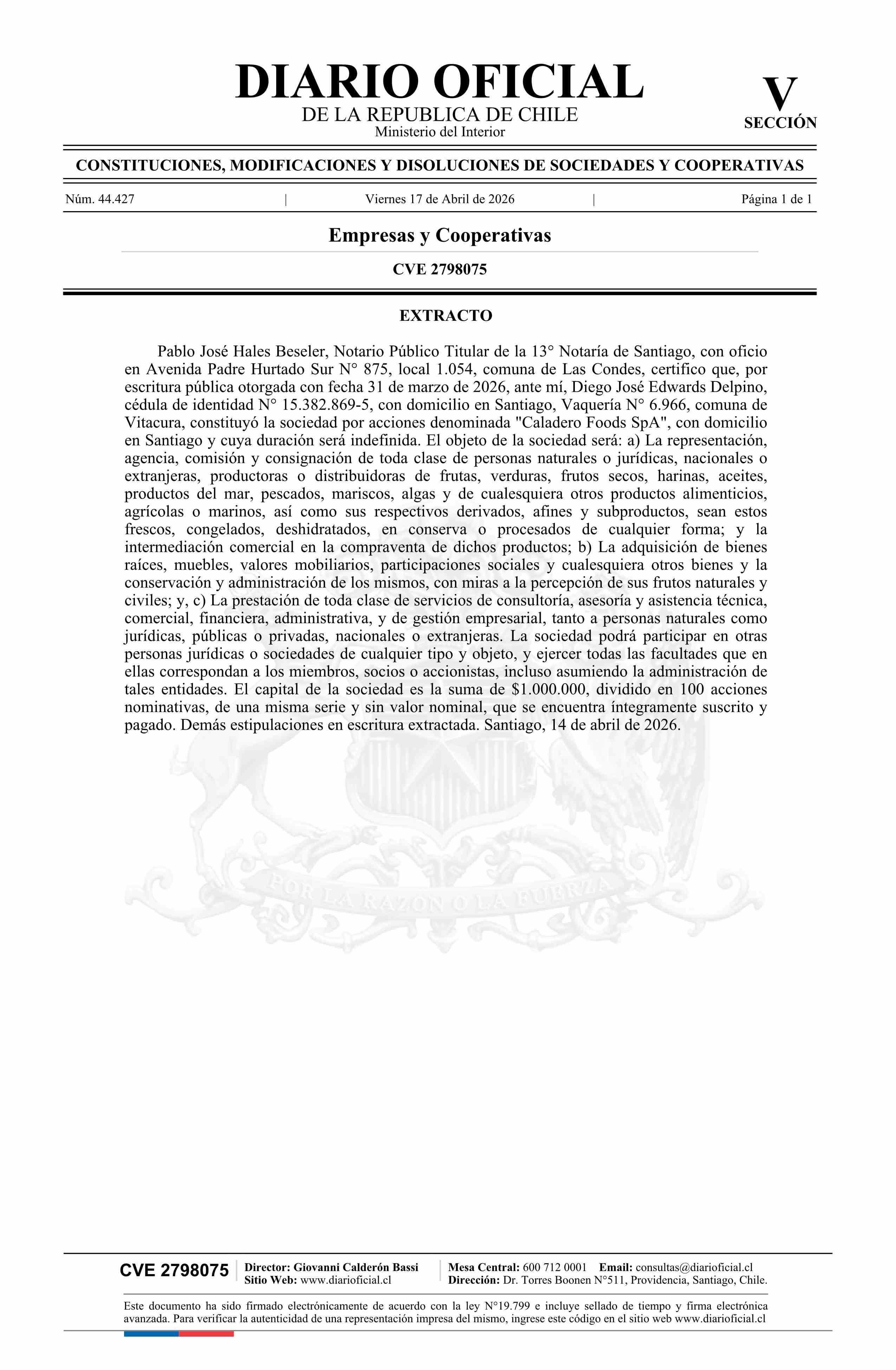 Diario Oficial Edición Electrónica (Diario Oficial de Chile - 5 Empresas Y Cooper)