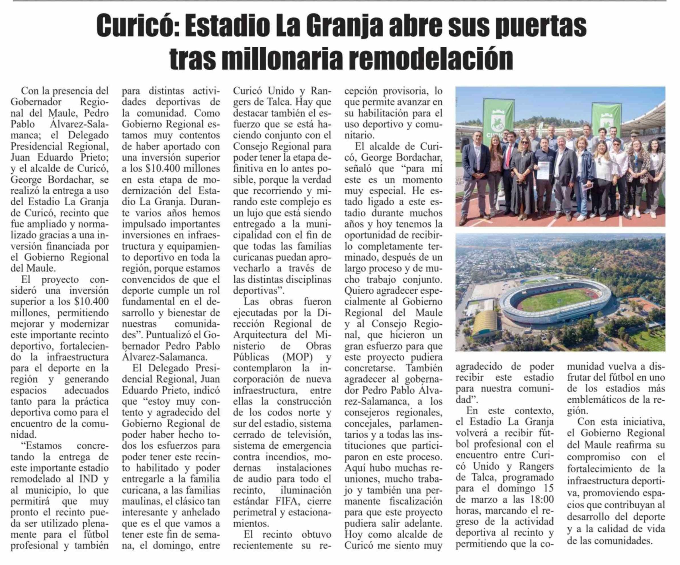 Curicó: Estadio La Granja abre sus puertas tras millonaria remodelación