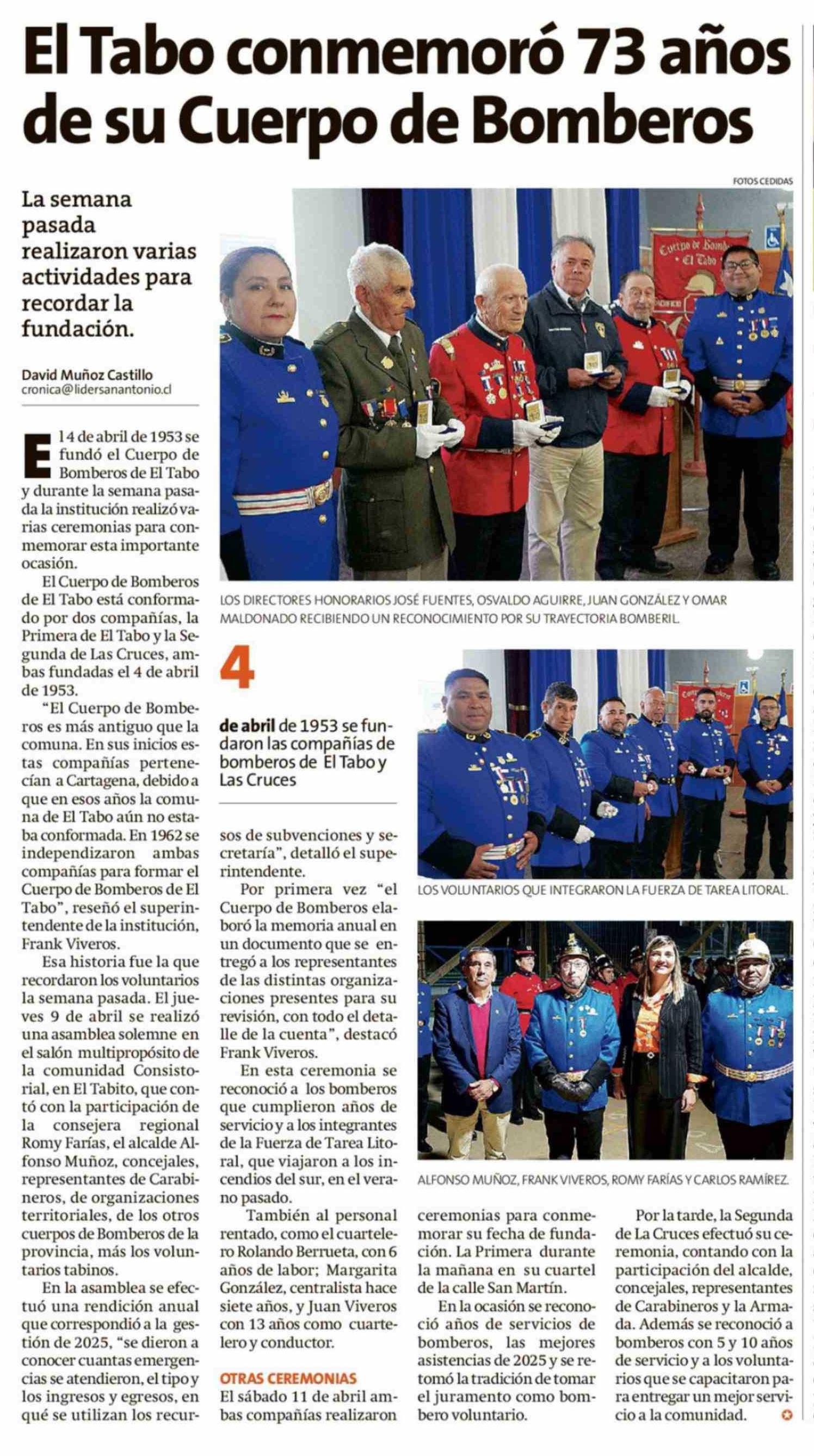 El Tabo conmemoró 73 años de su Cuerpo de Bomberos