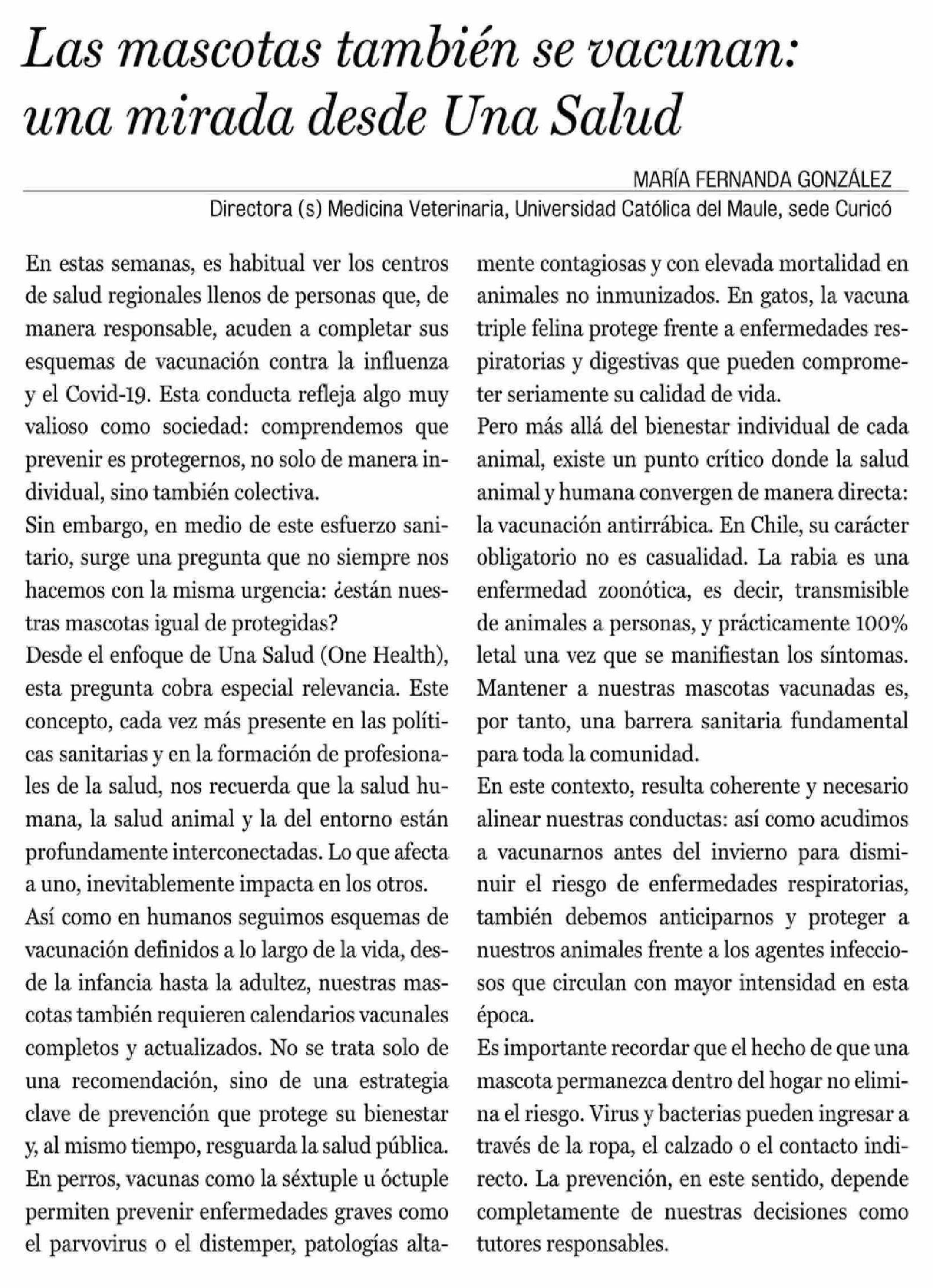 Cartas: Las mascotas también se vacunan: una mirada desde Una Salud