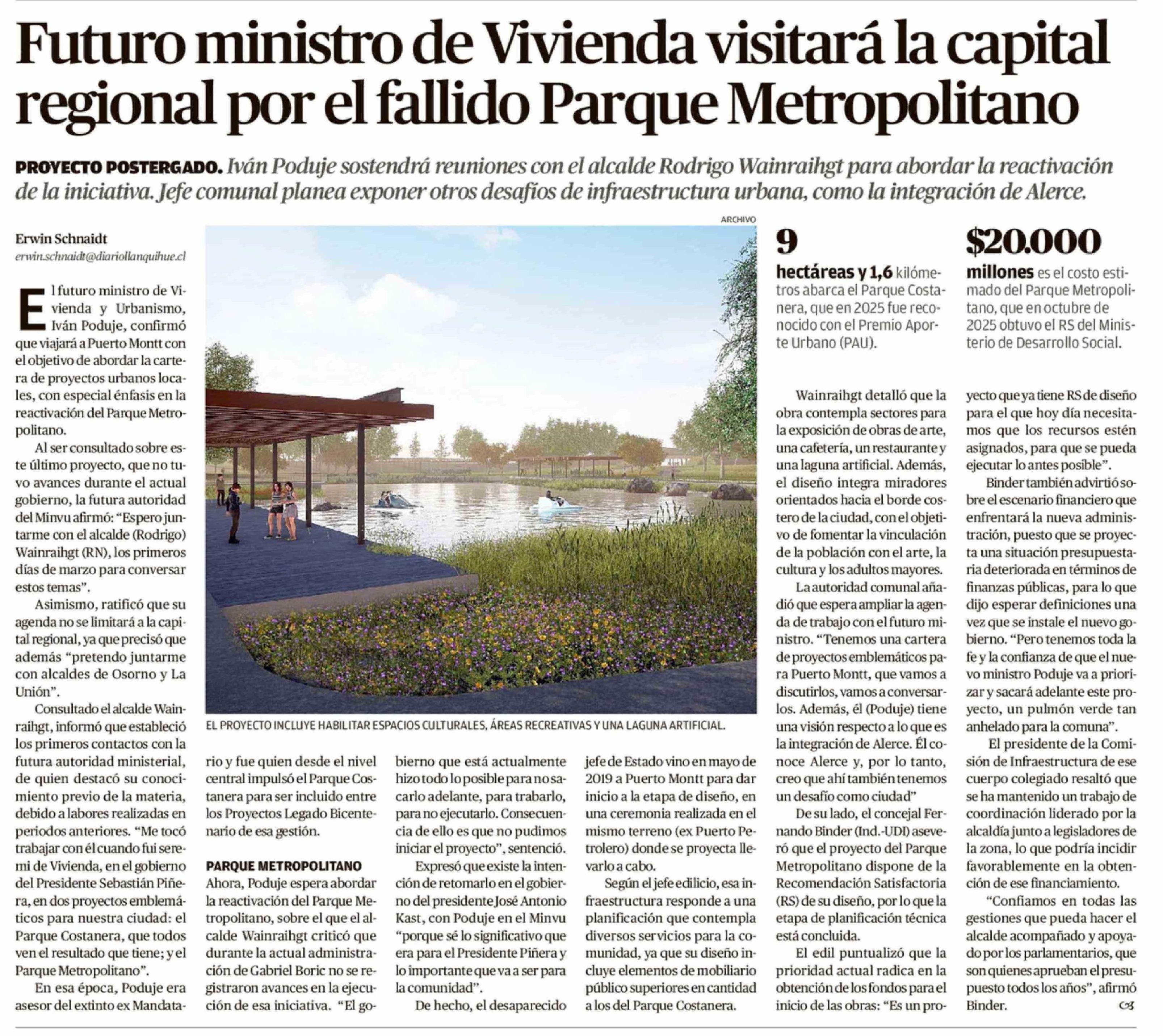 Futuro ministro de Vivienda visitará la capital regional por el fallido Parque Metropolitano