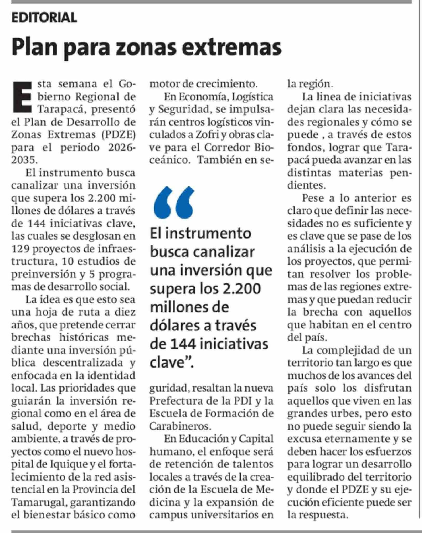 Editorial: Plan para zonas extremas