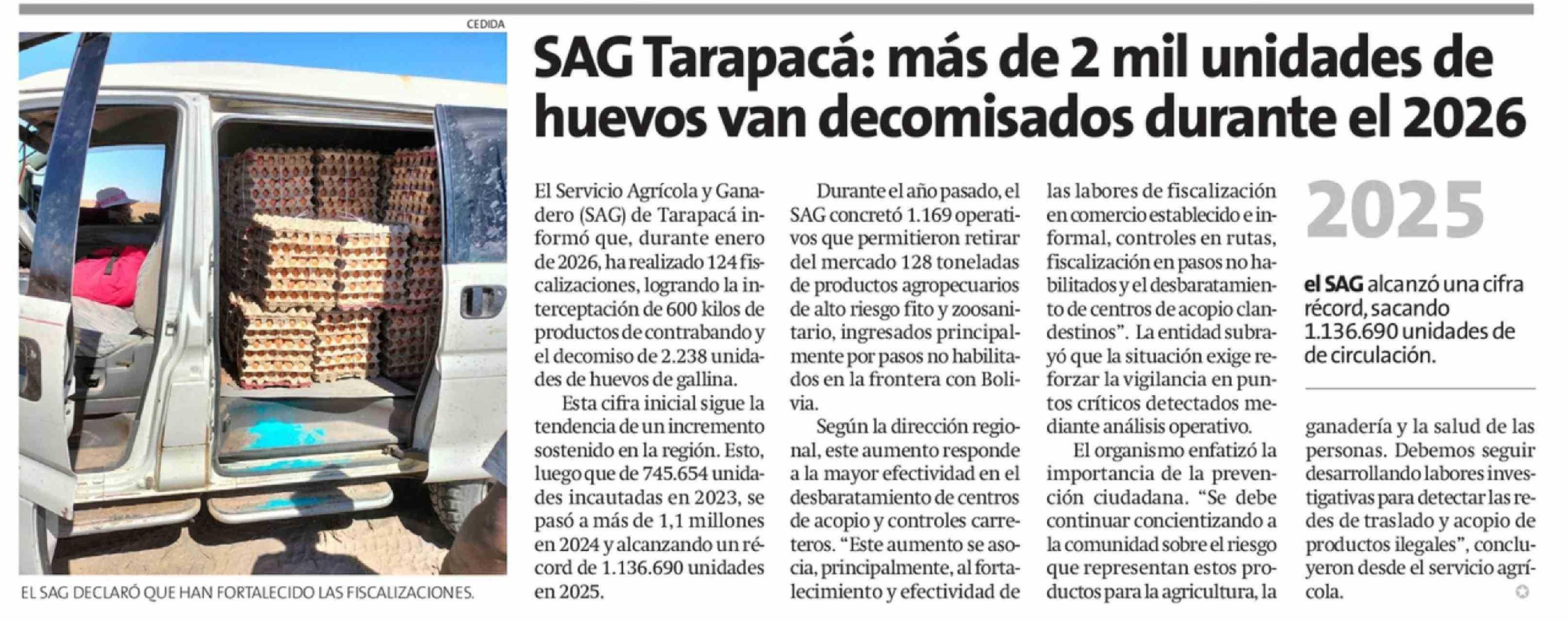SAG Tarapacá: más de 2 mil unidades de huevos van decomisados durante el 2026