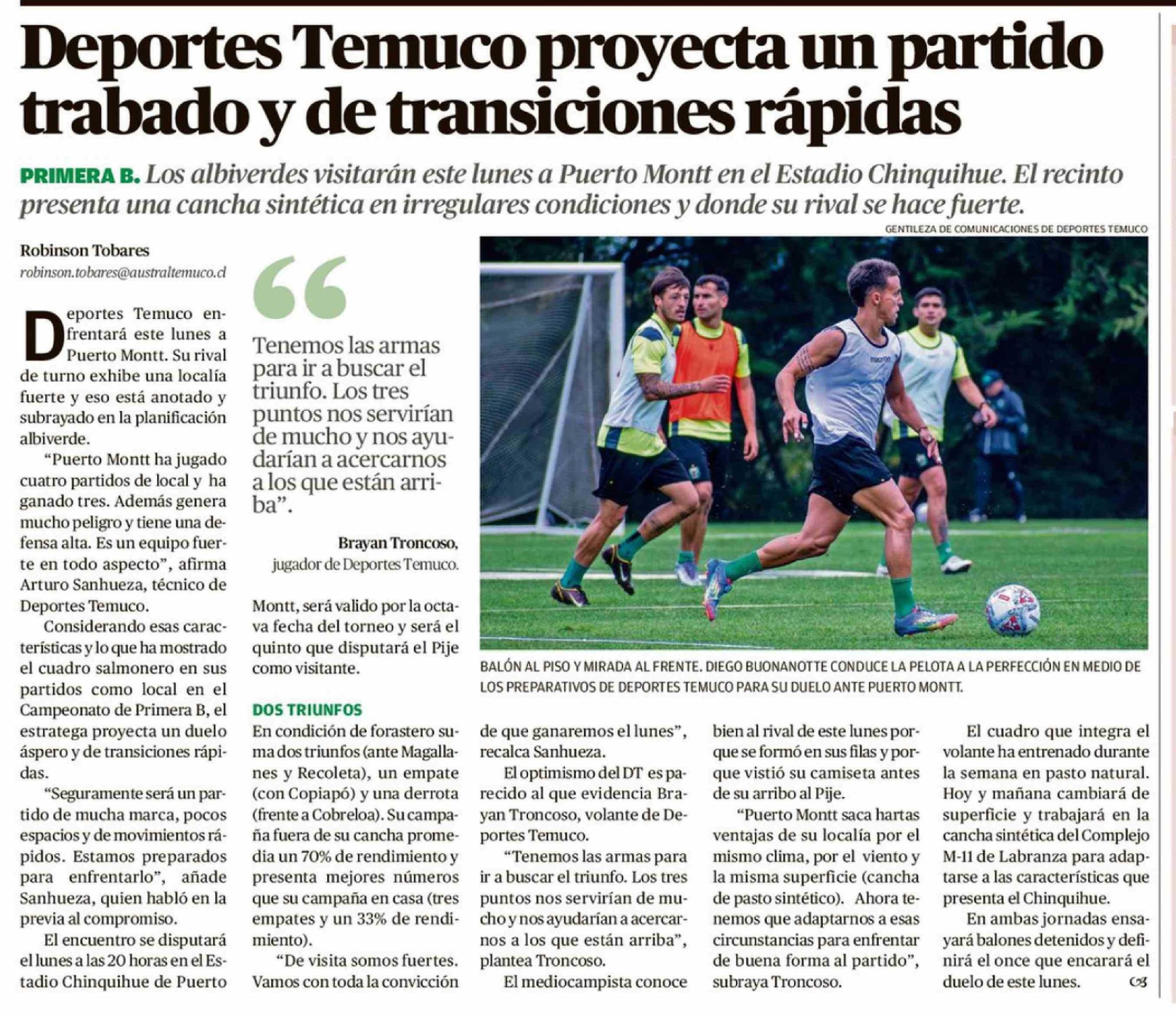 Deportes Temuco proyecta un partido trabado y de transiciones rápidas