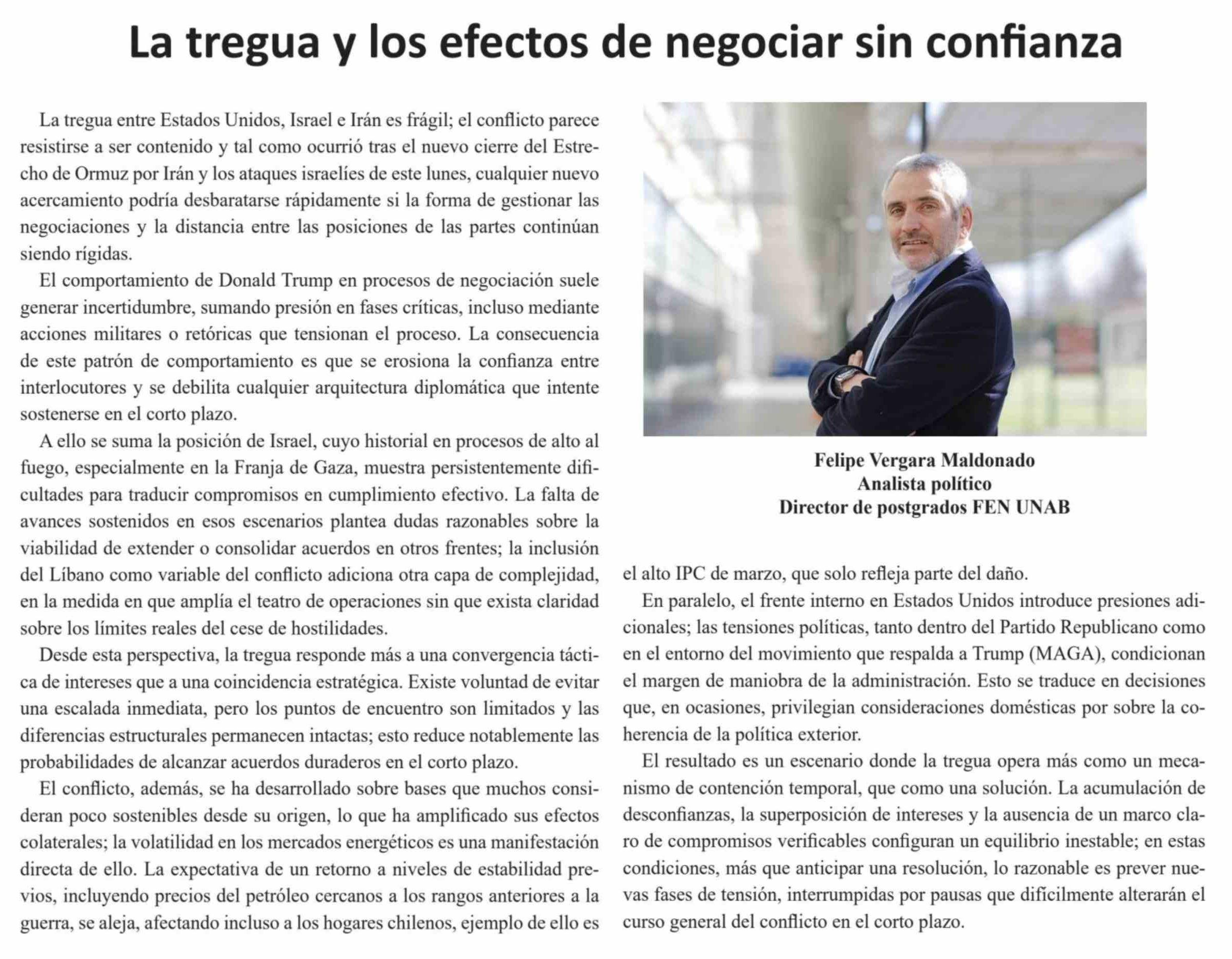 Columnas de Opinión: La tregua y los efectos de negociar sin confianza