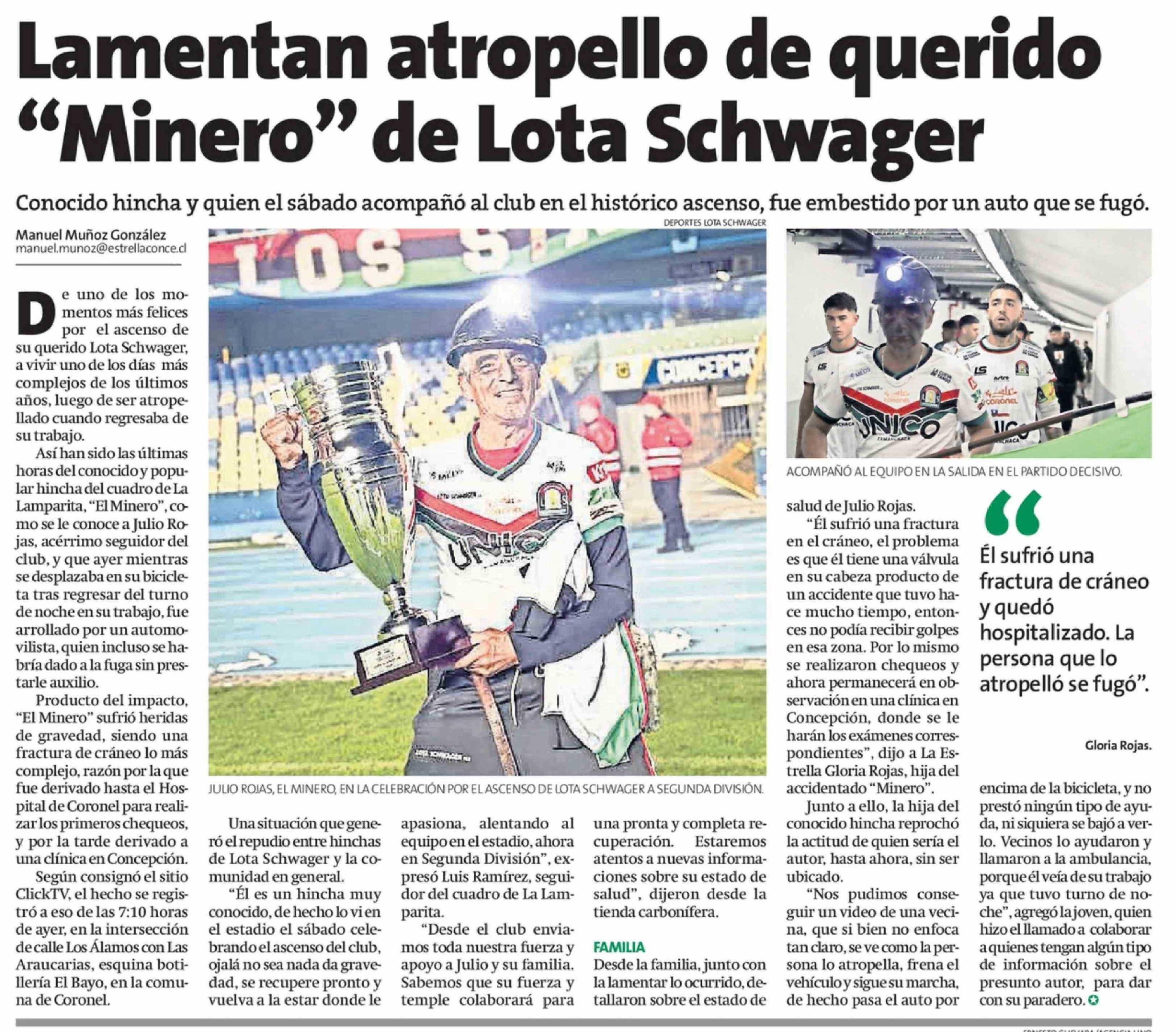 Lamentan atropello de querido "Minero" de Lota Schwager