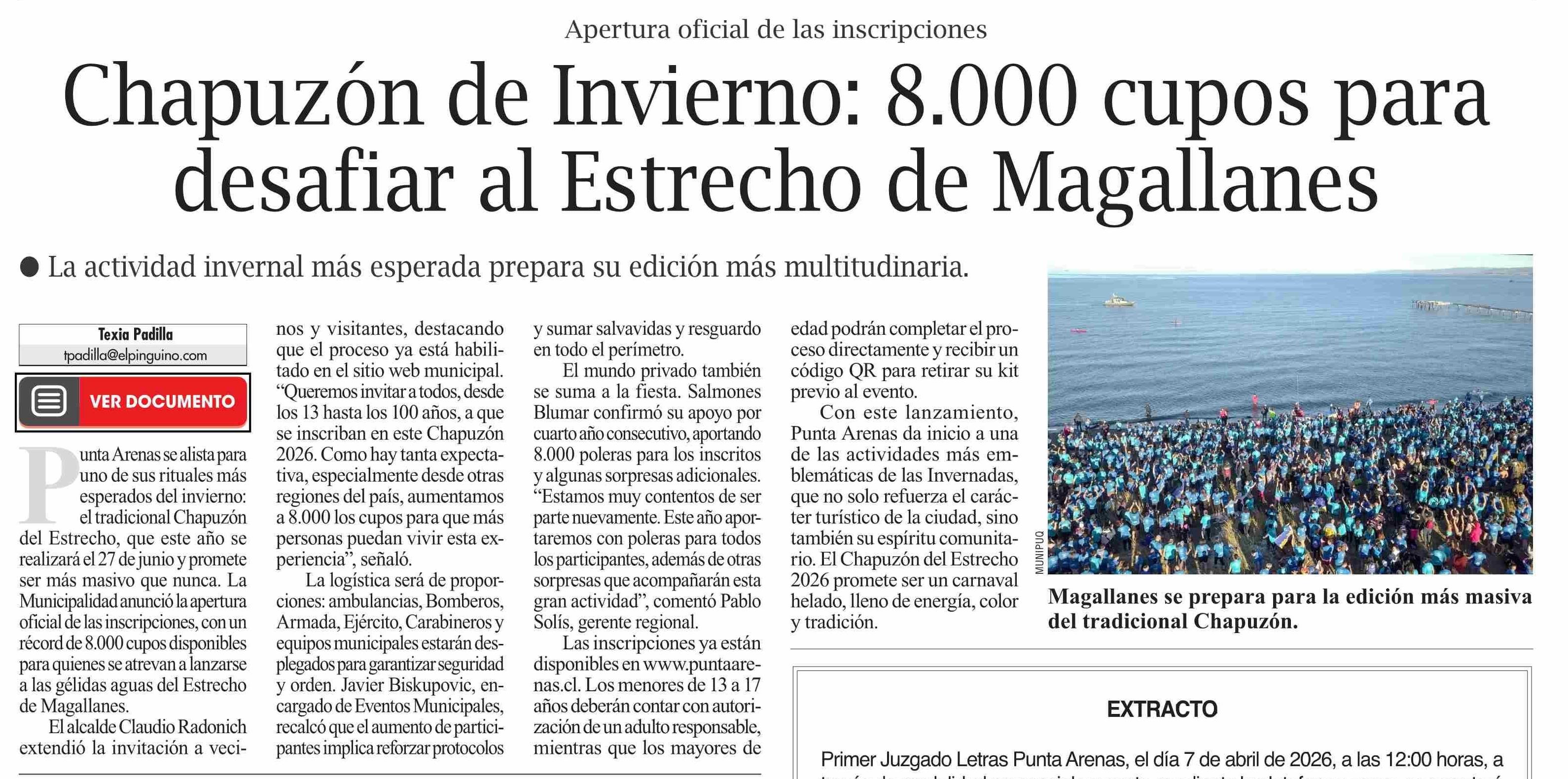 Chapuzón de Invierno: 8.000 cupos para desafiar al Estrecho de Magallanes