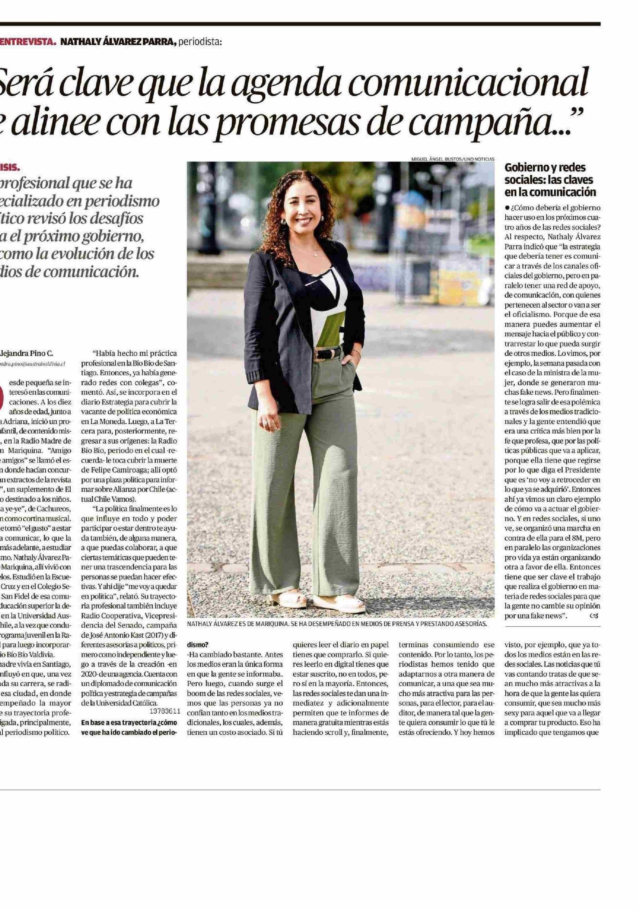 "Será clave que la agenda comunicacional se alinee con las promesas de campaña ... "