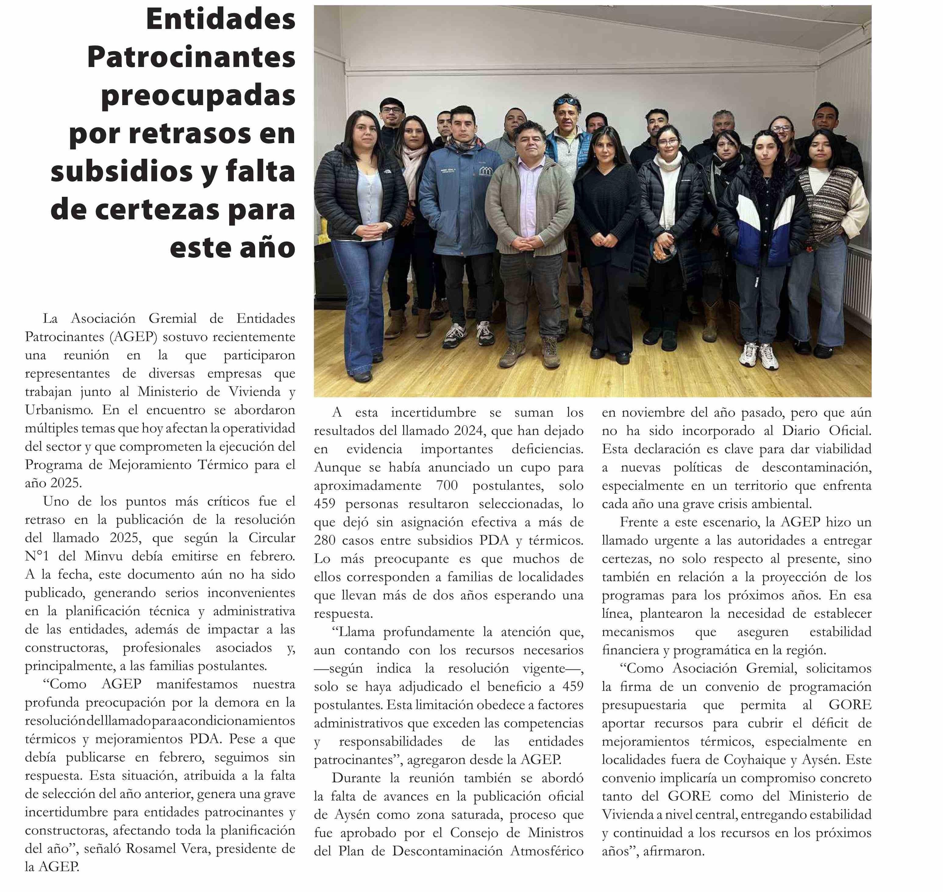 Entidades Patrocinantes preocupadas por retrasos en subsidios y falta de certezas para este año