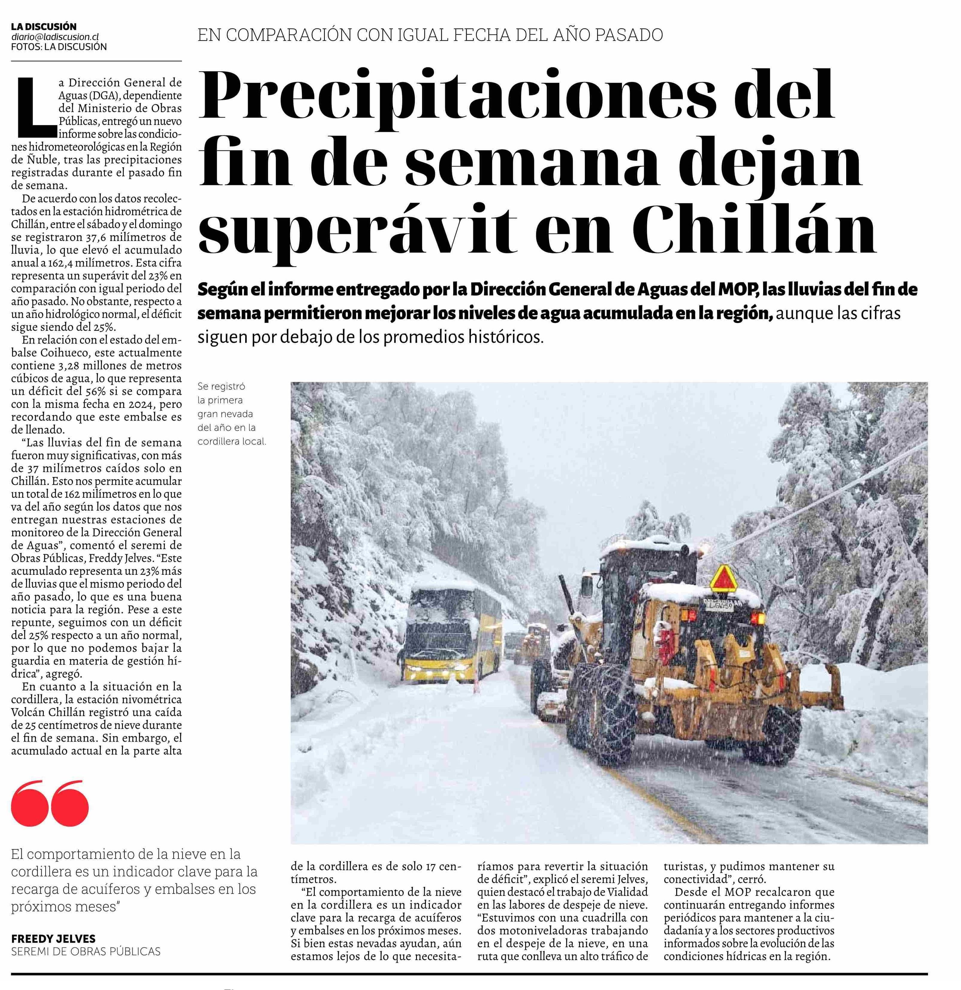 Precipitaciones del fin de semana dejan superávit en Chillán