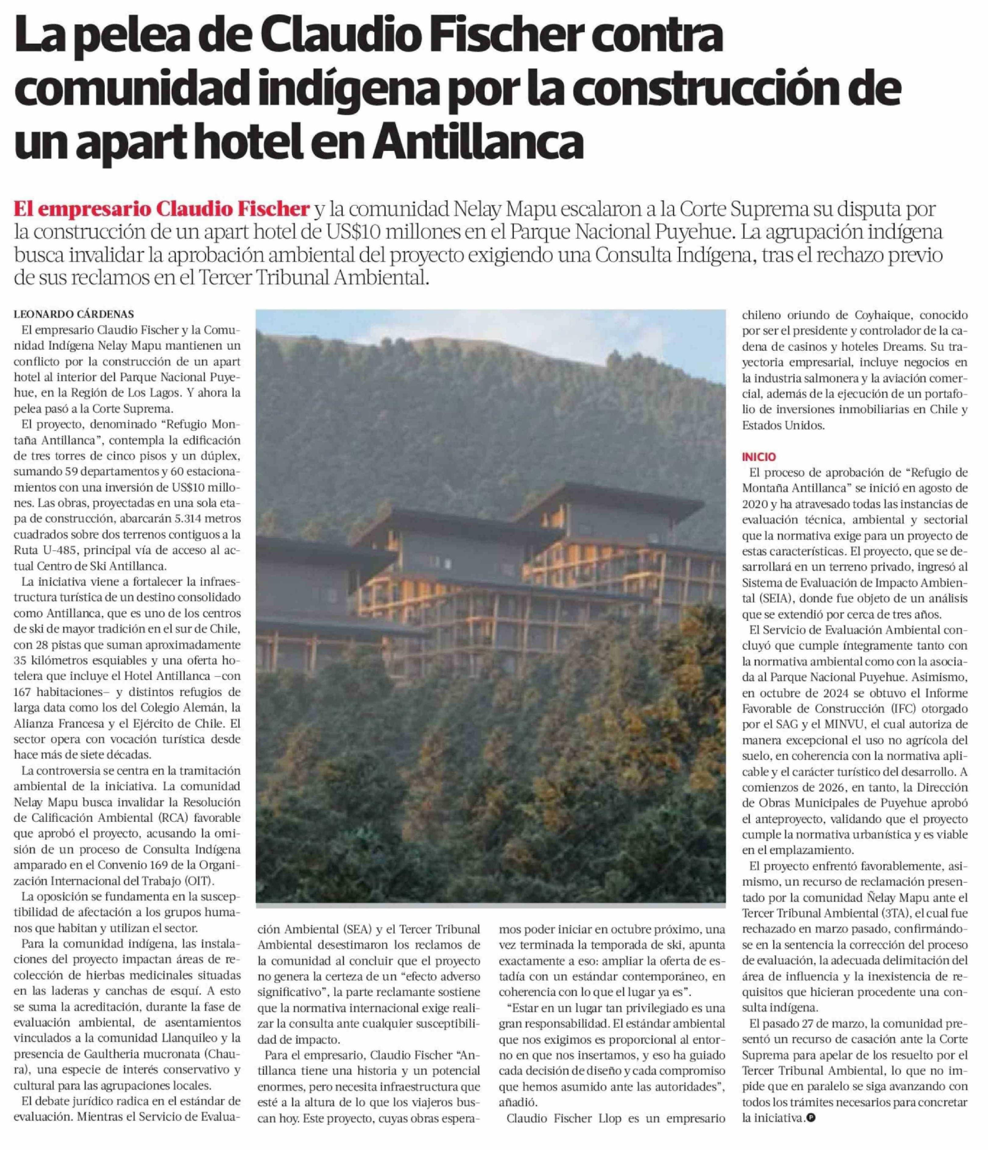 La pelea de Claudio Fischer contra comunidad indígena por la construcción de un apart hotel en Antillanca