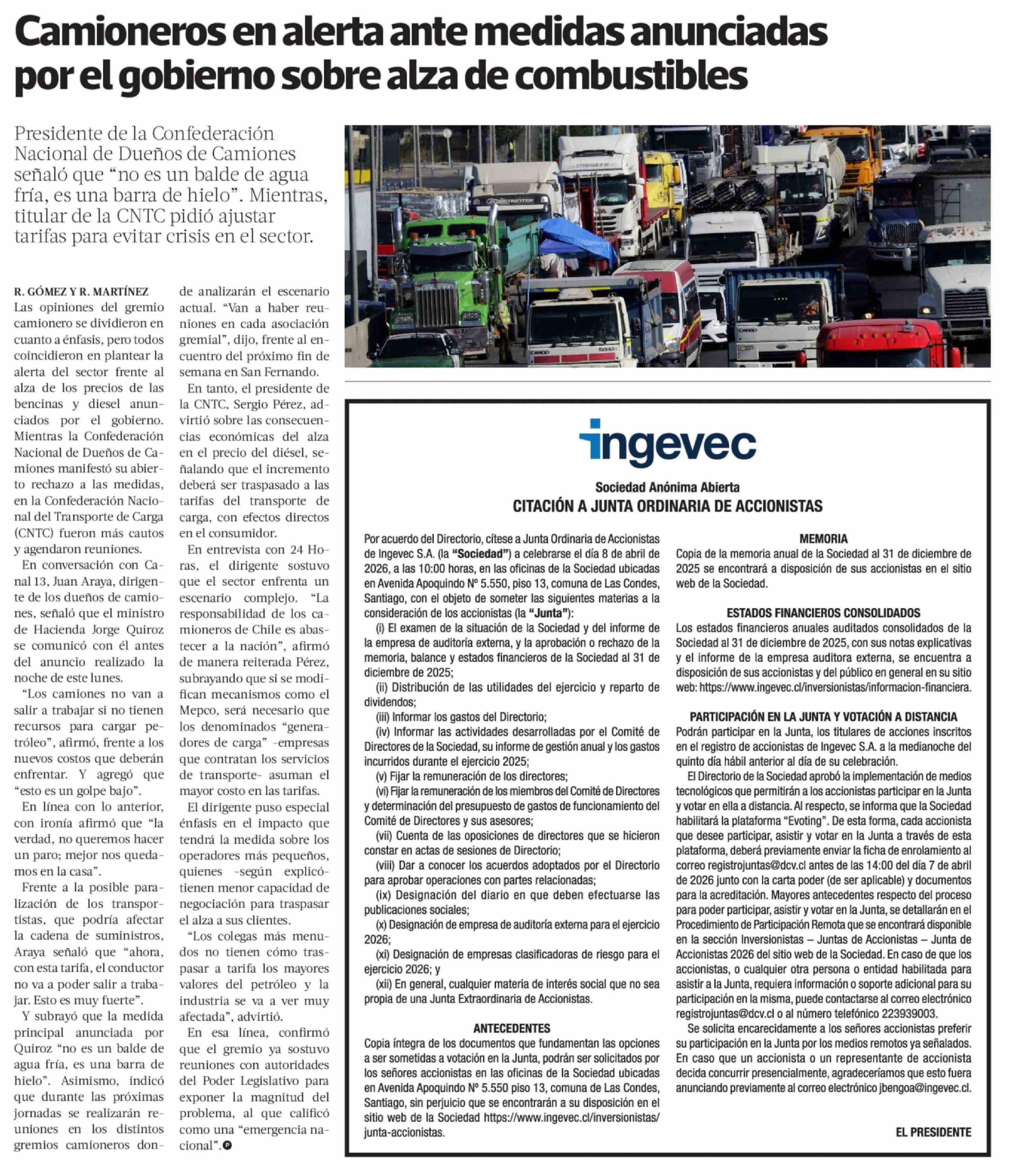 Camioneros en alerta ante medidas anunciadas por el gobierno sobre alza de combustibles