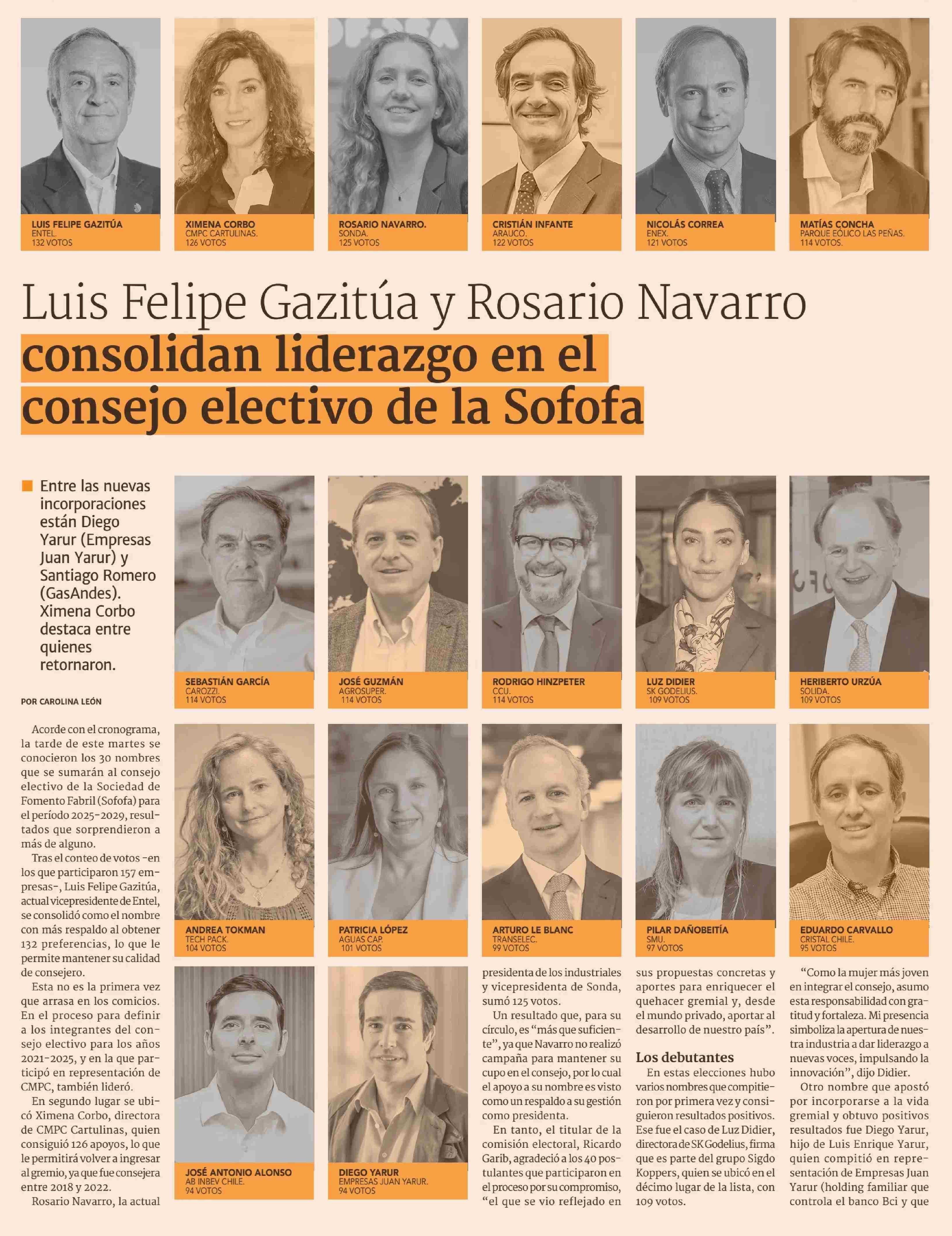 Luis Felipe Gazitúa y Rosario Navarro consolidan liderazgo en el consejo electivo de la Sofofa