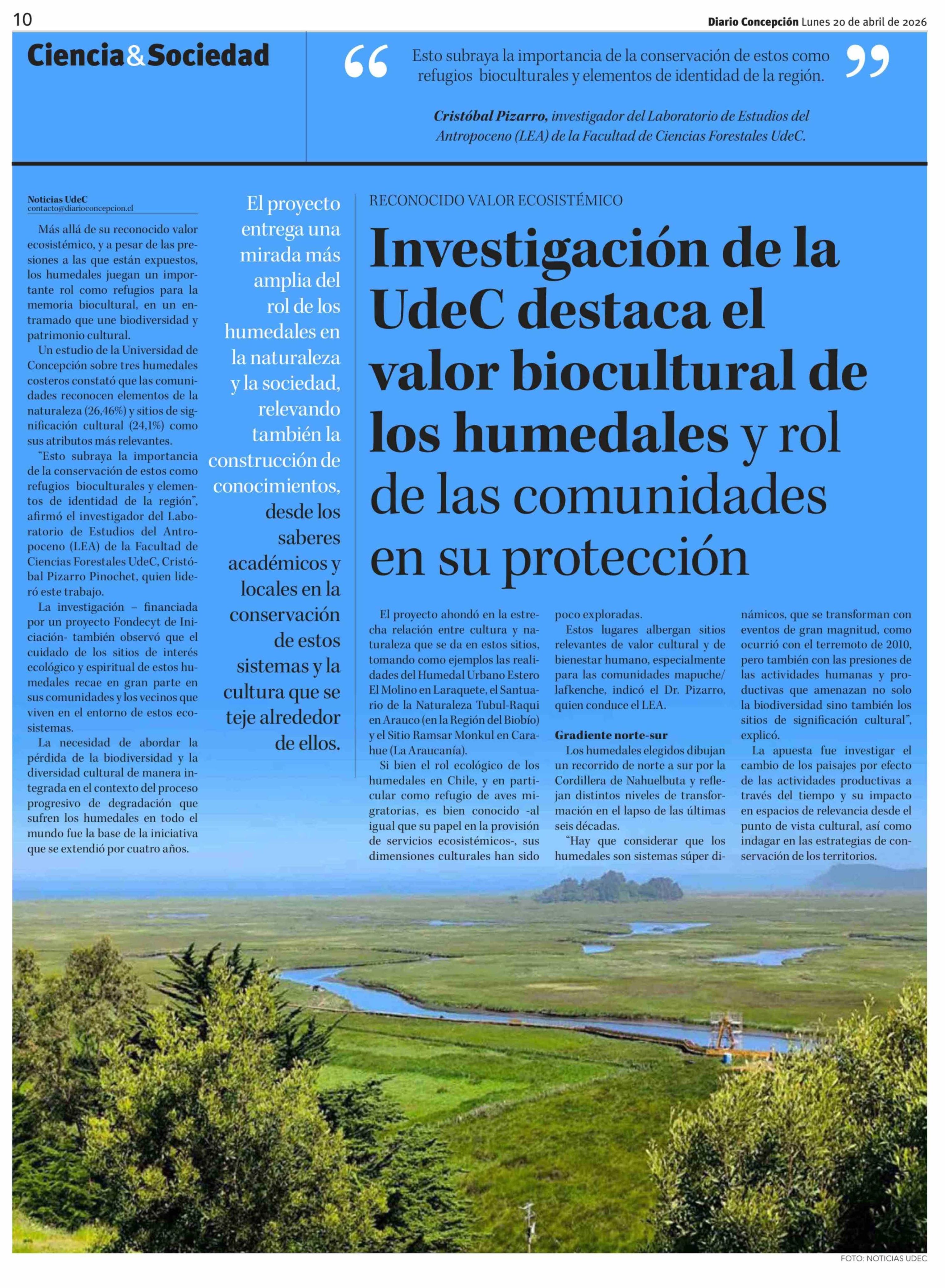 Investigación de la UdeC destaca el valor biocultural de los humedales y rol de las comunidades en su protección
