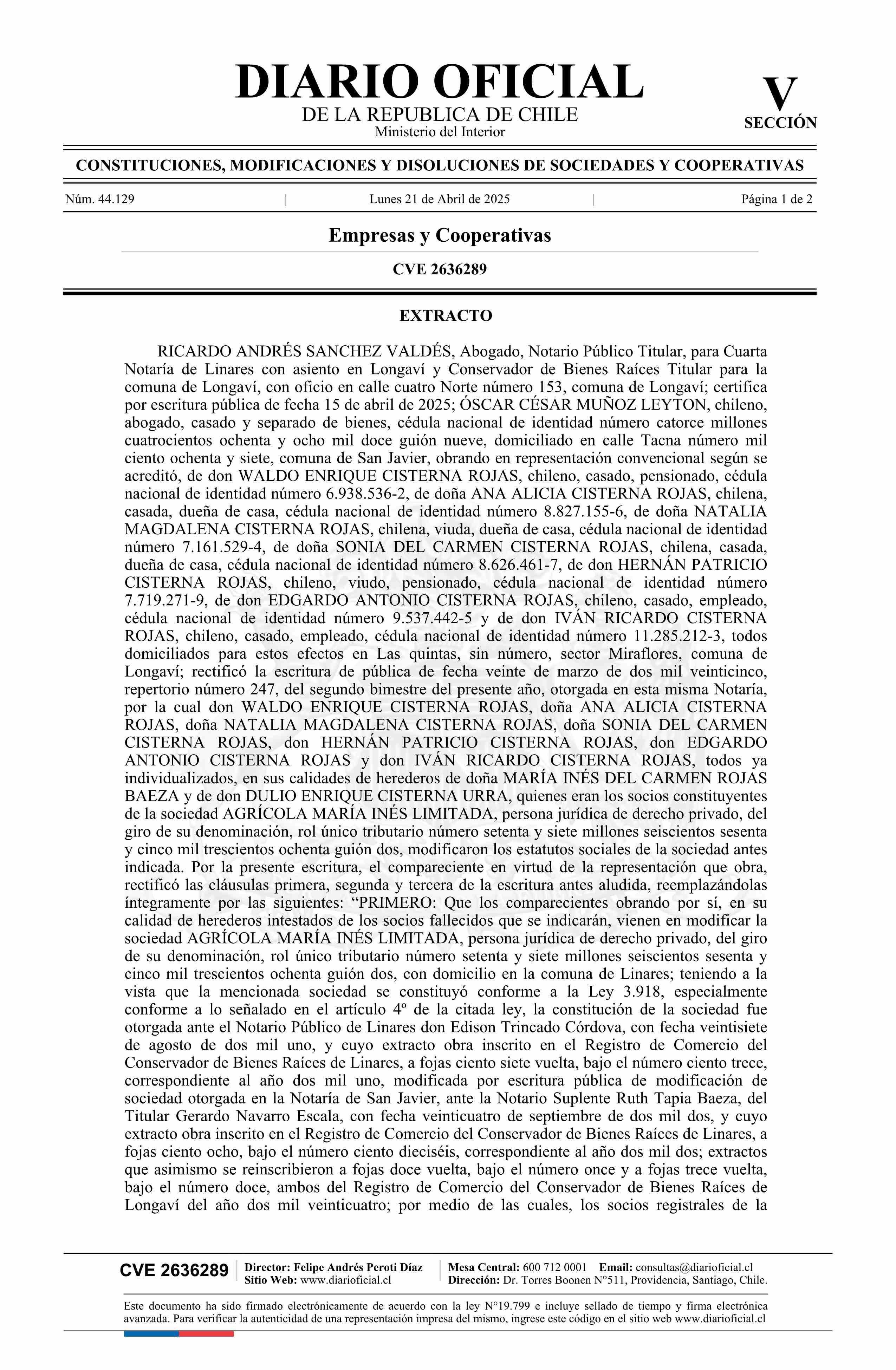 AGRÍCOLA MARÍA INÉS LIMITADA 77.665.380-2*