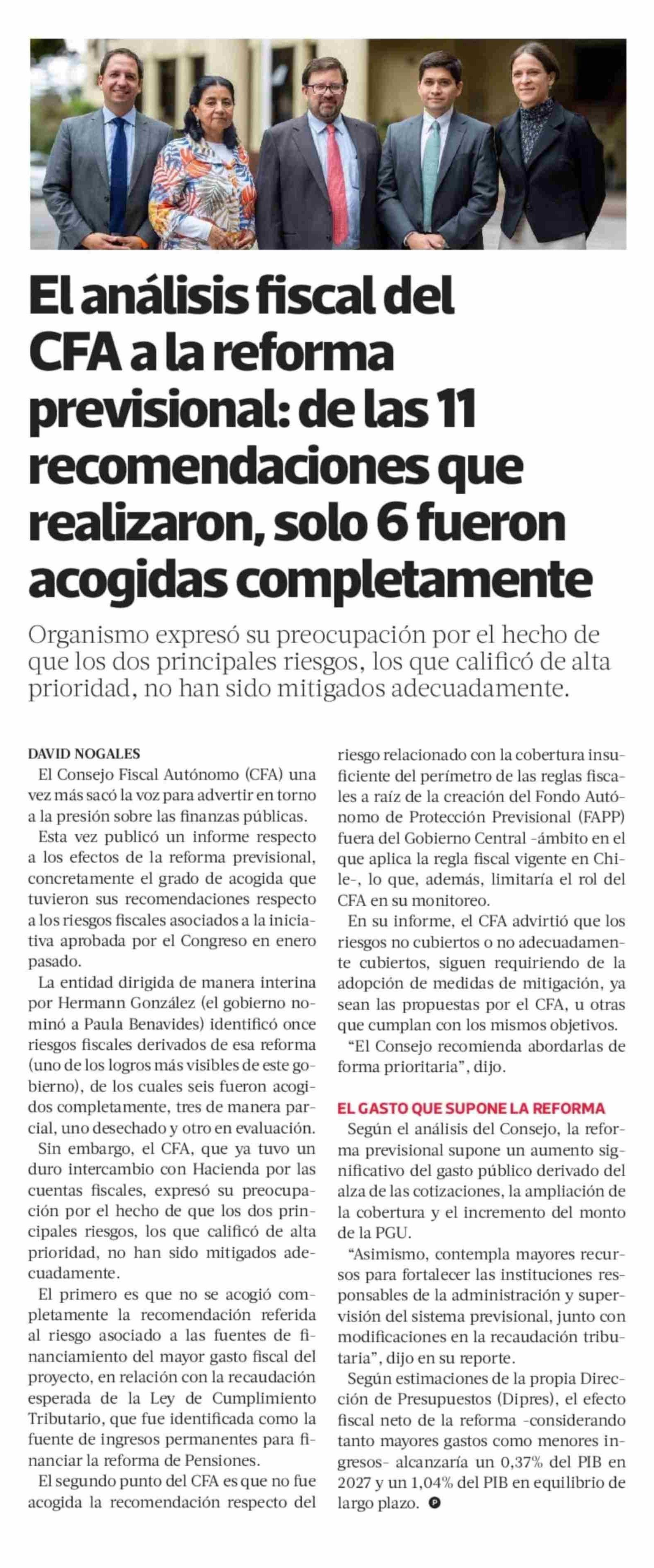 El análisis fiscal del CFA ala reforma previsional: de las 11 recomendaciones que realizaron, solo 6 fueron acogidas completamente