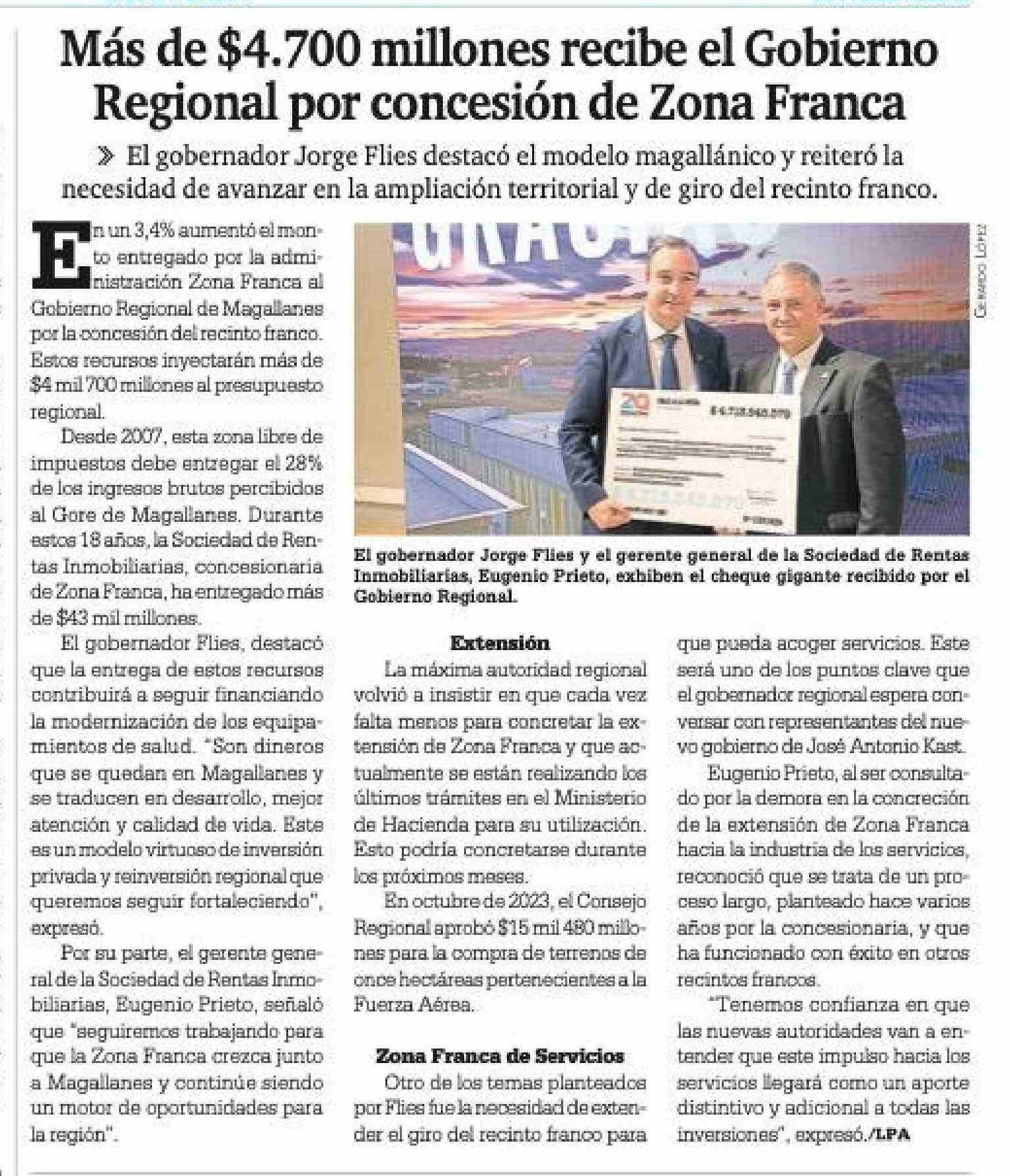 Más de $4.700 millones recibe el Gobierno Regional por concesión de Zona Franca