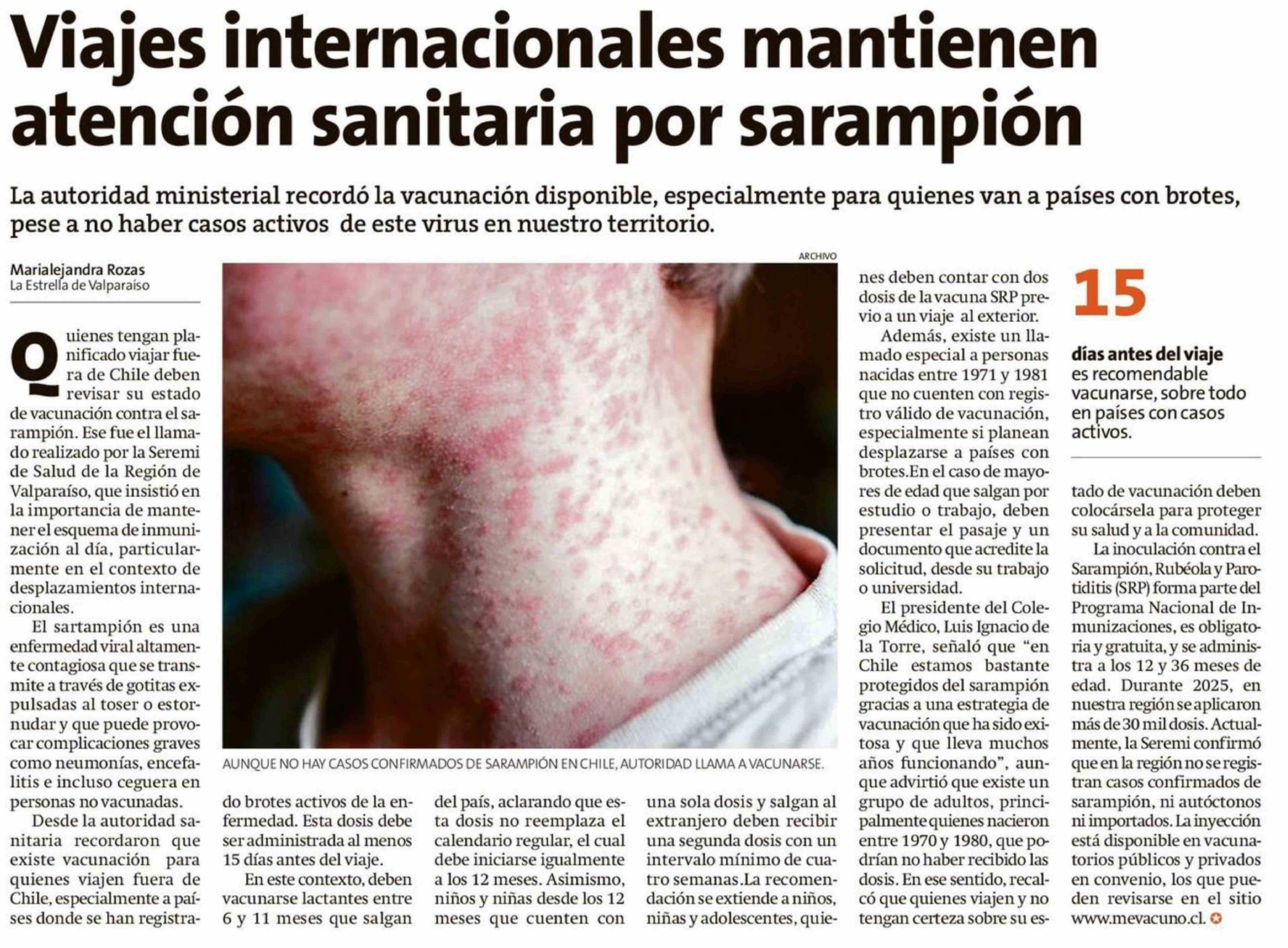 Título: Viajes internacionales mantienen atención sanitaria por sarampión