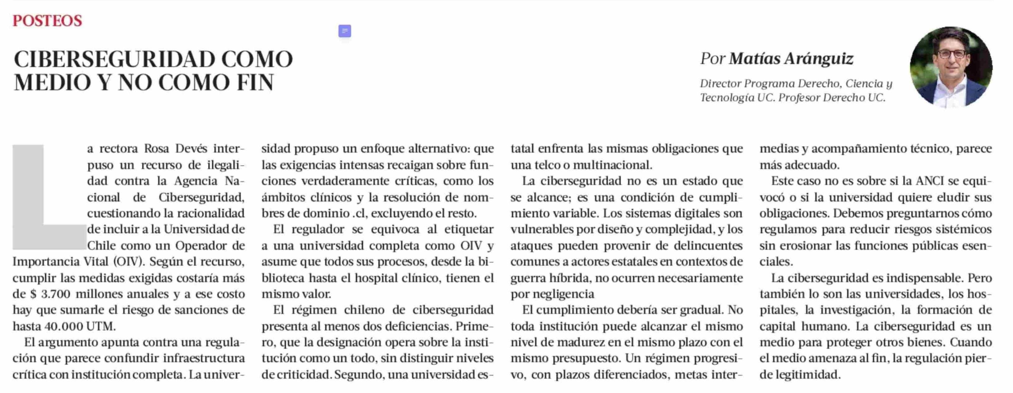 Columnas de Opinión: CIBERSEGURIDAD COMO MEDIO Y NO COMO FIN