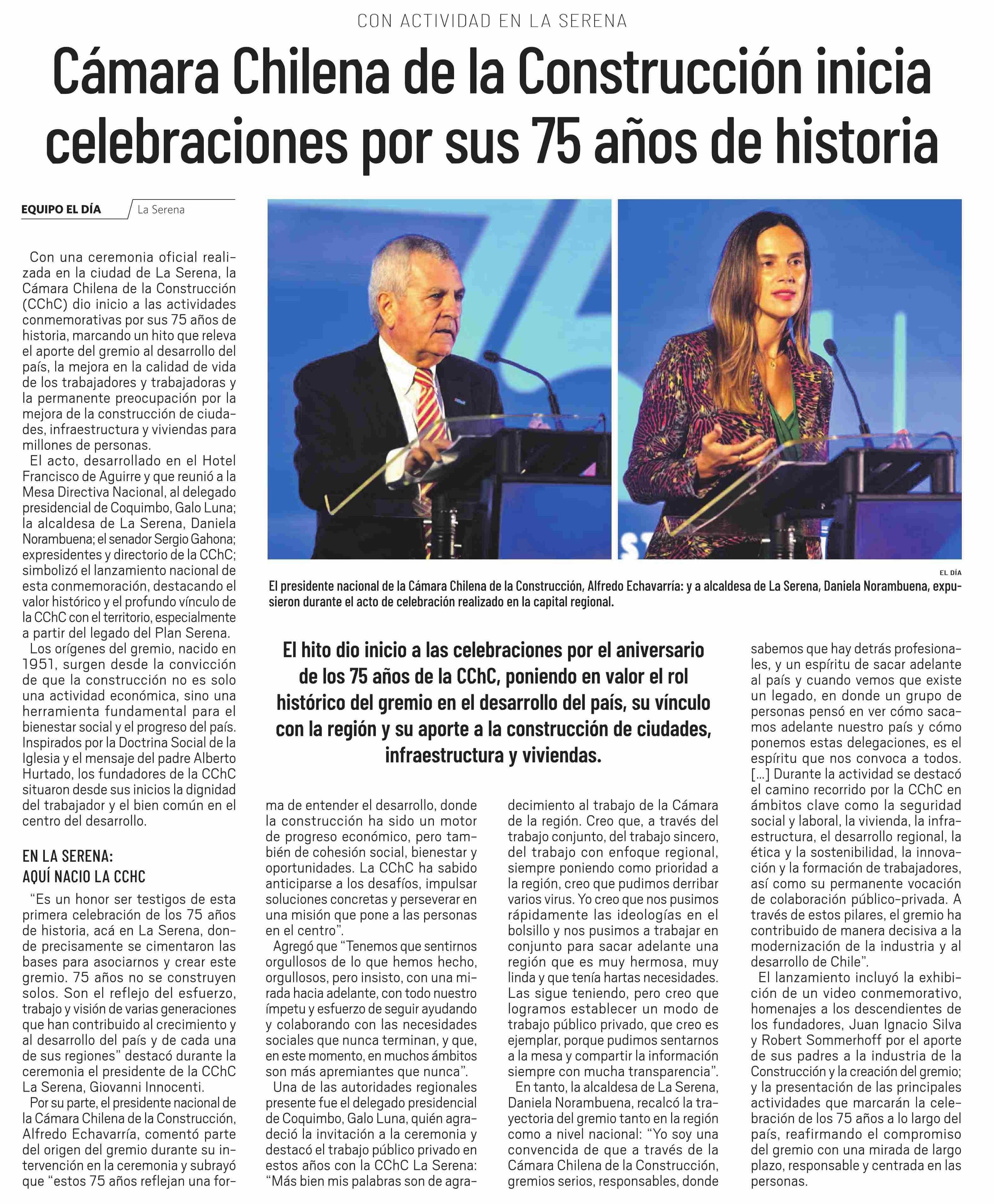 Cámara Chilena de la Construcción inicia celebraciones por sus 75 años de historia