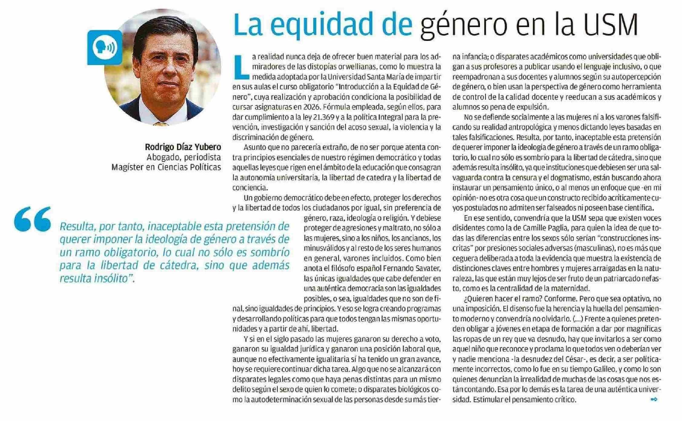COLUMNAS DE OPINIÓN: La equidad de género en la USM