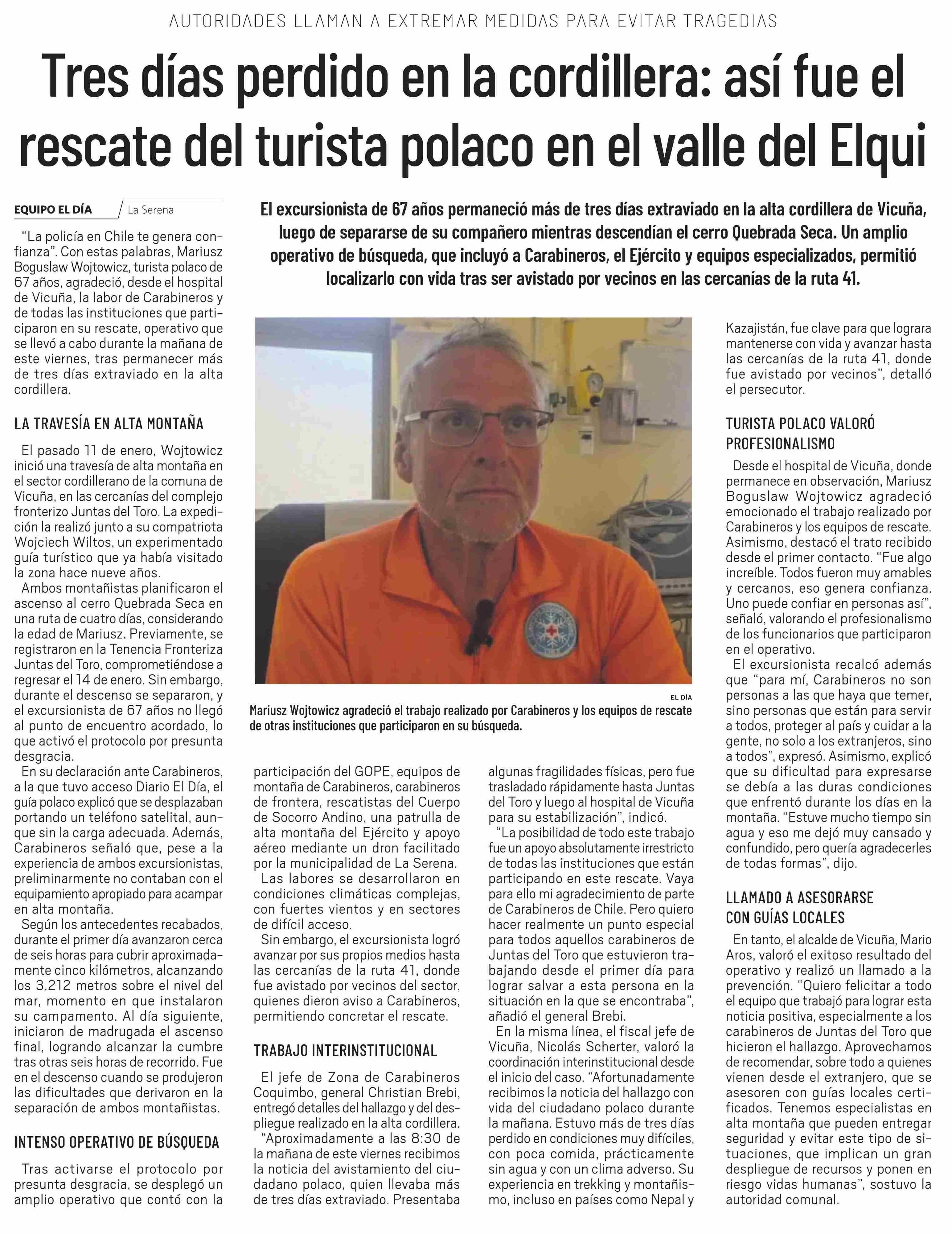 Tres días perdido en la cordillera: así fue el rescate del turista polaco en el valle del Elqui