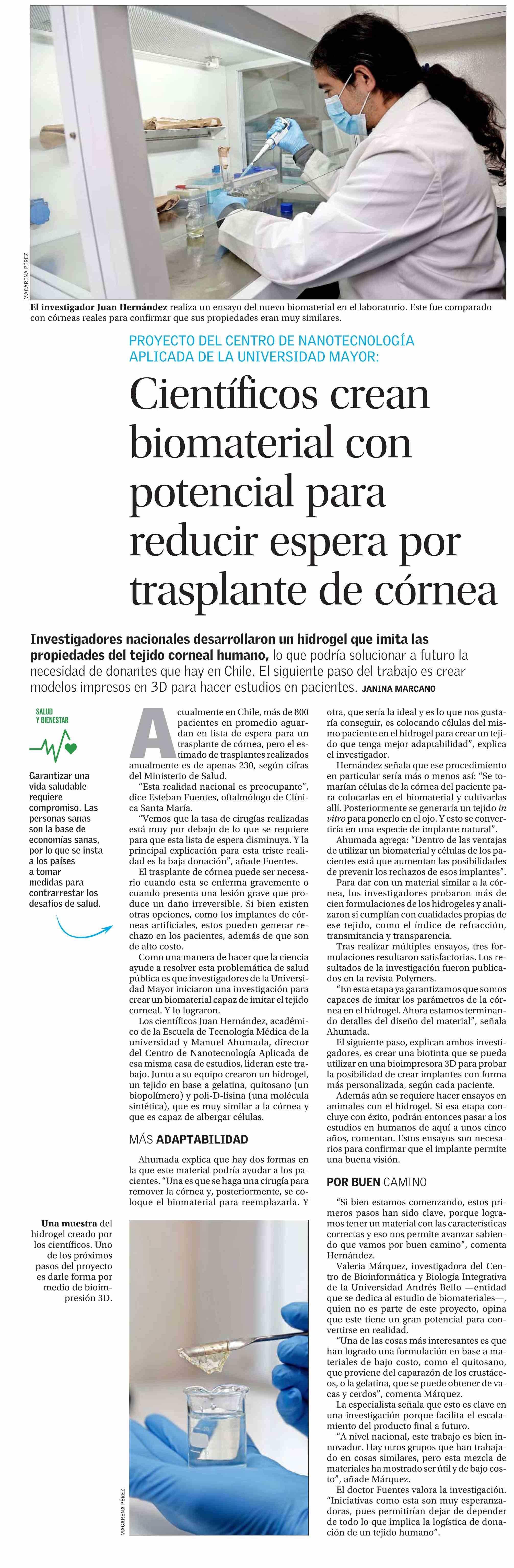 Científicos crean biomaterial con potencial para reducir espera por trasplante de córnea