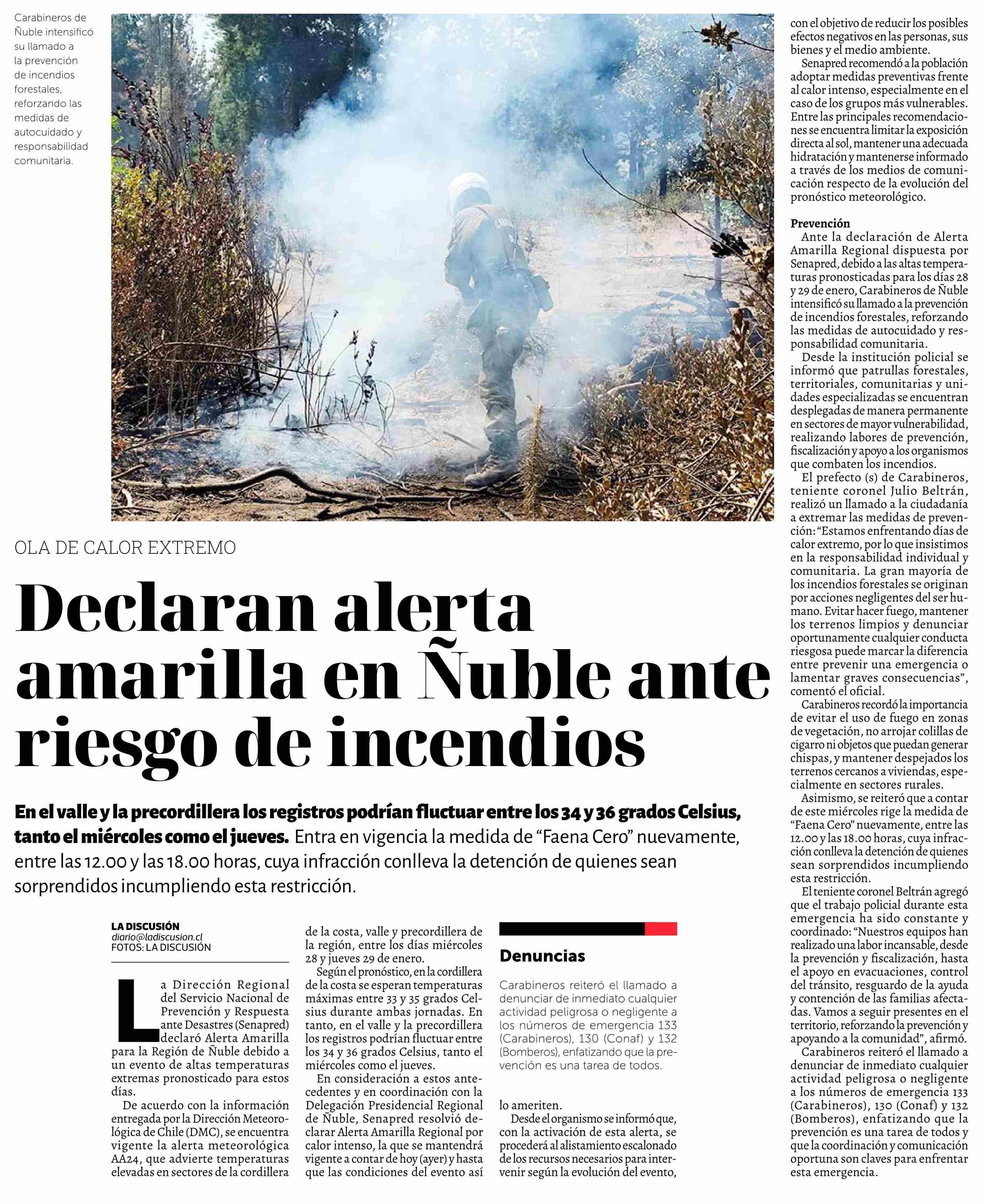 Declaran alerta amarilla en Ñuble ante riesgo de incendios