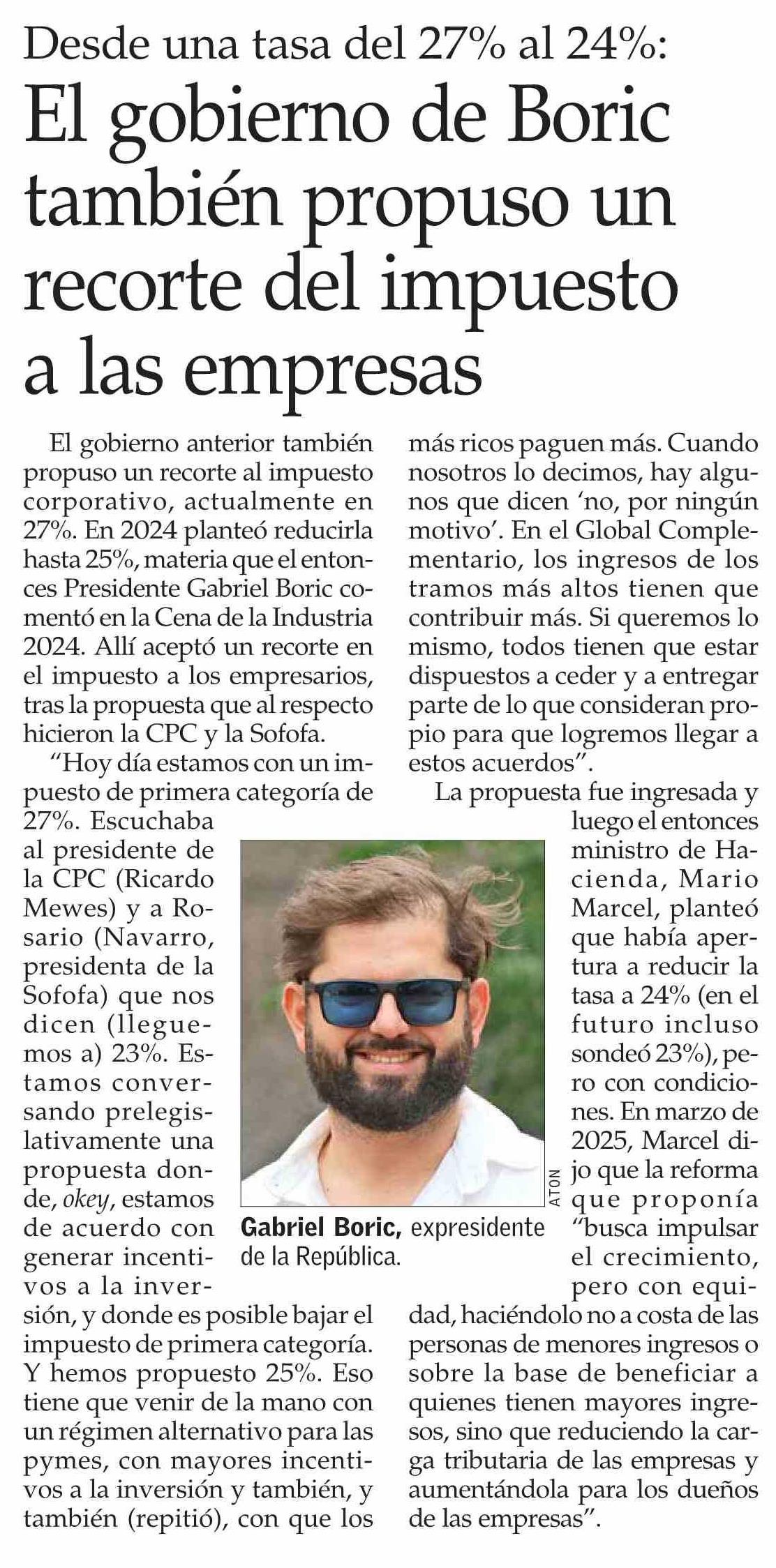 El gobierno de Boric también propuso un recorte del impuesto a las empresas