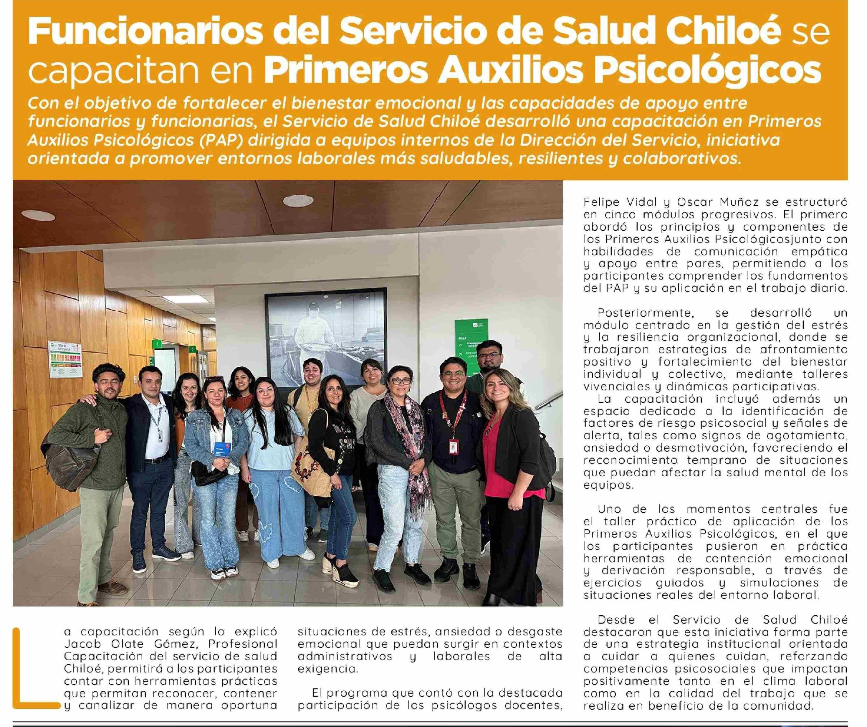 Funcionarios del Servicio de Salud Chiloé se capacitan en Primeros Auxilios Psicológicos