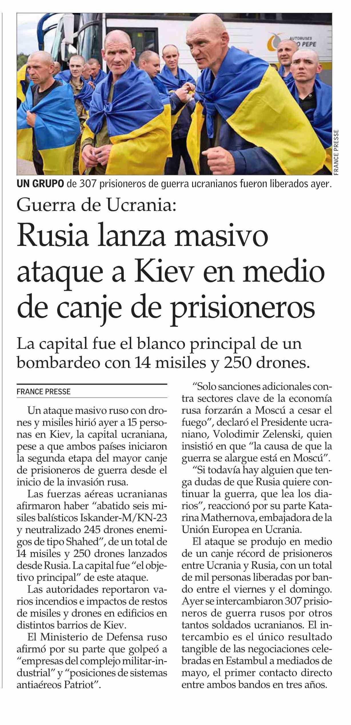 Rusia lanza masivo ataque a Kiev en medio de canje de prisioneros