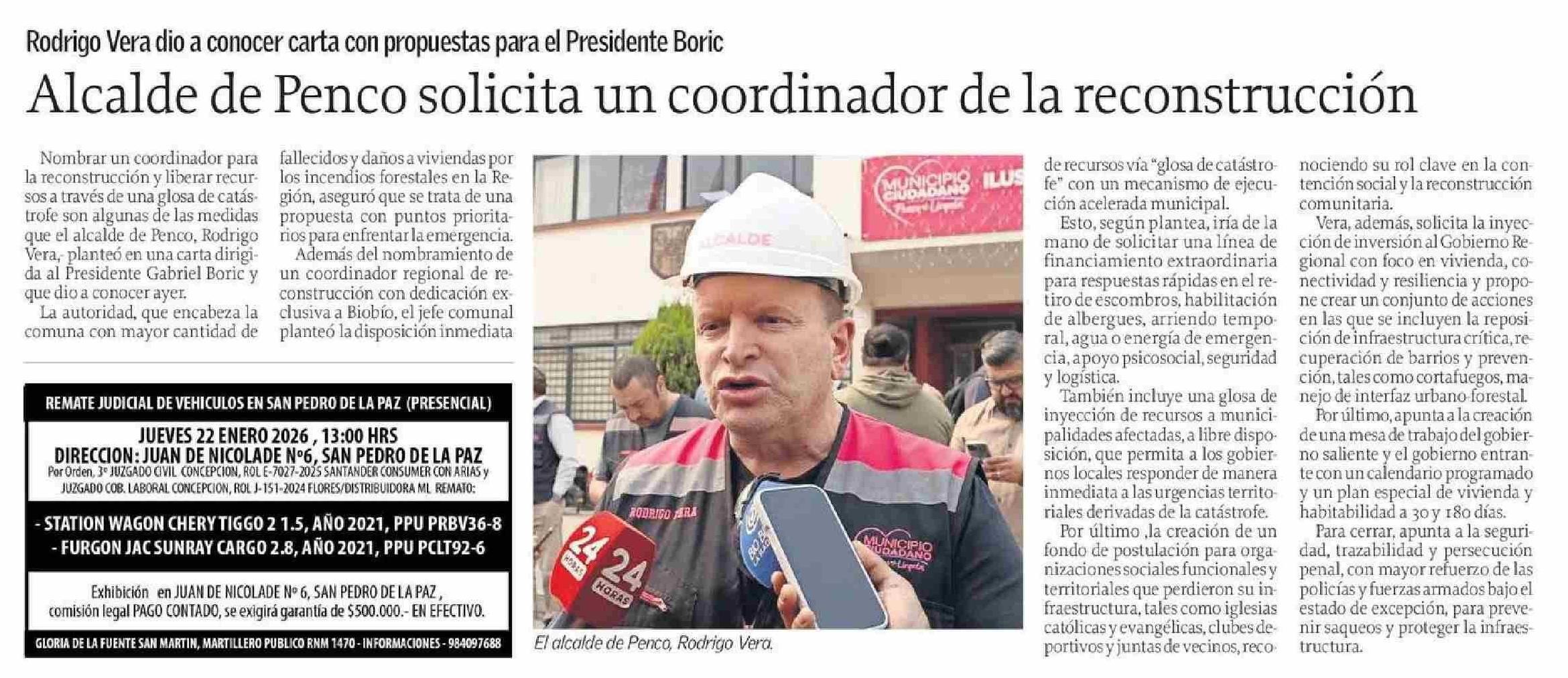 Alcalde de Penco solicita un coordinador de la reconstrucción