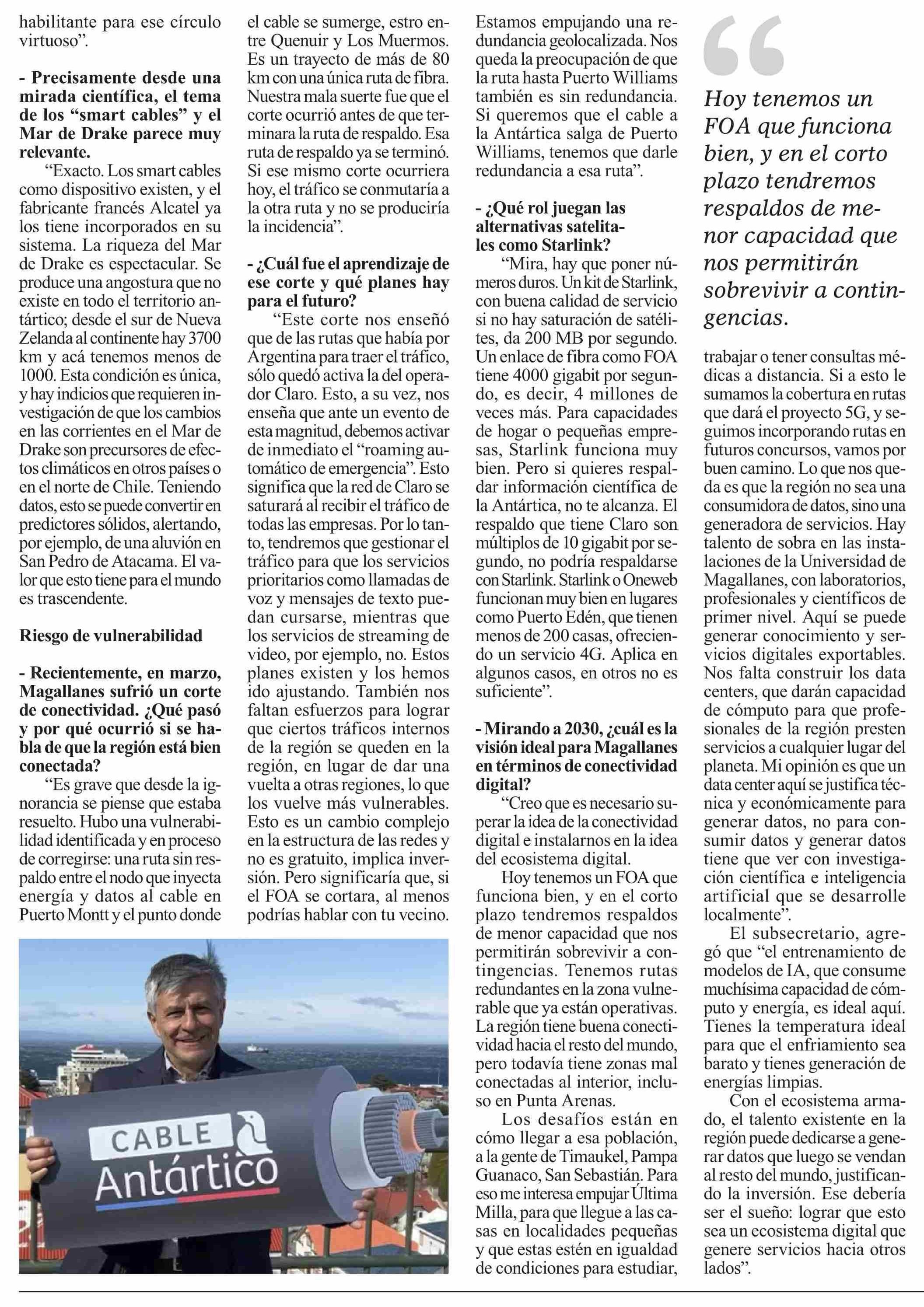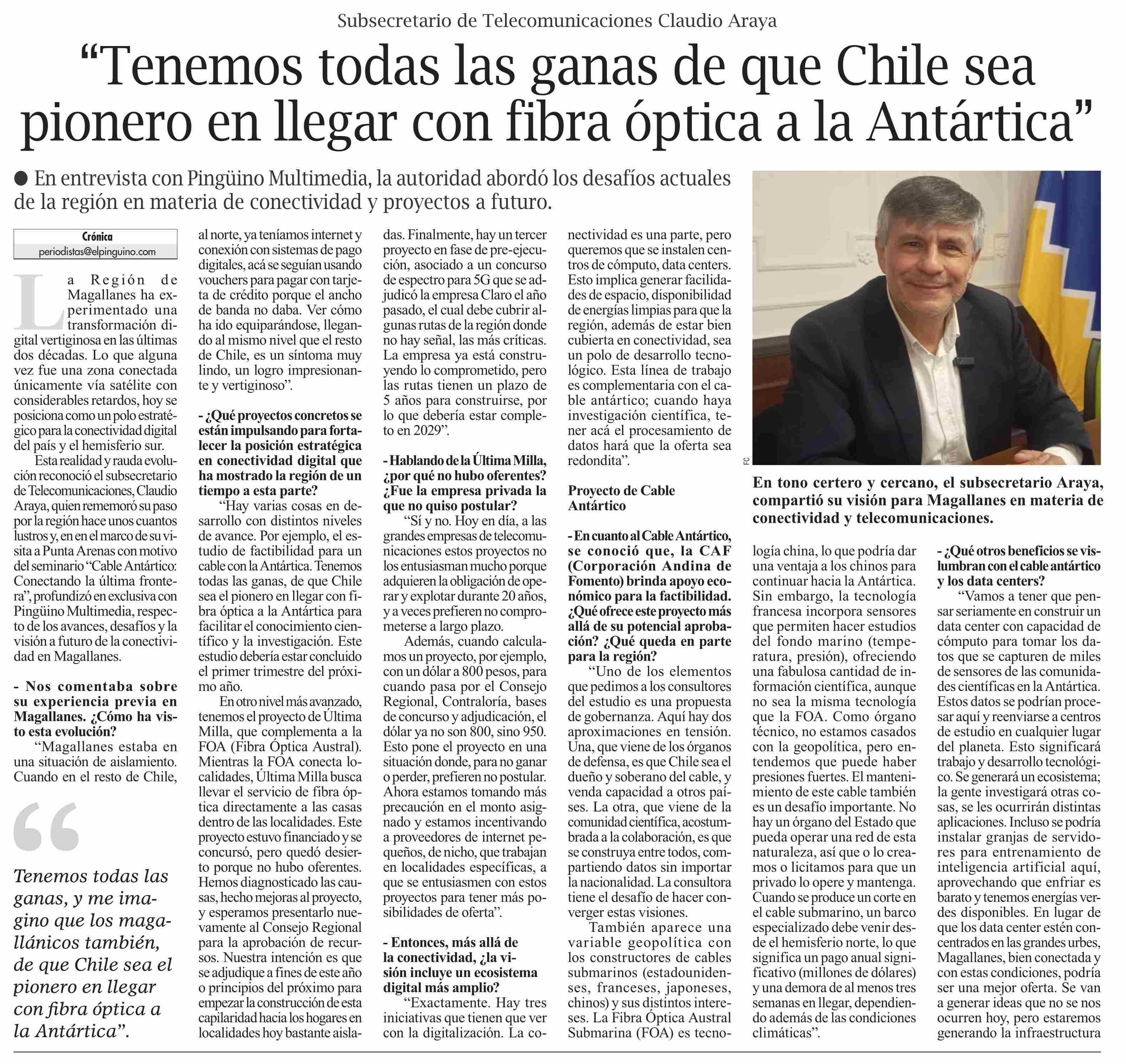 “Tenemos todas las ganas de que Chile sea pionero en llegar con fibra óptica a la Antártica”