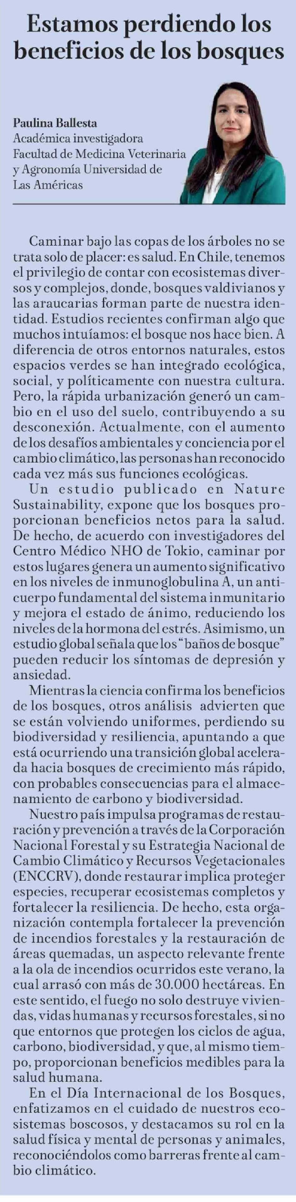 Columnas de Opinión: Estamos perdiendo los beneficios de los bosques