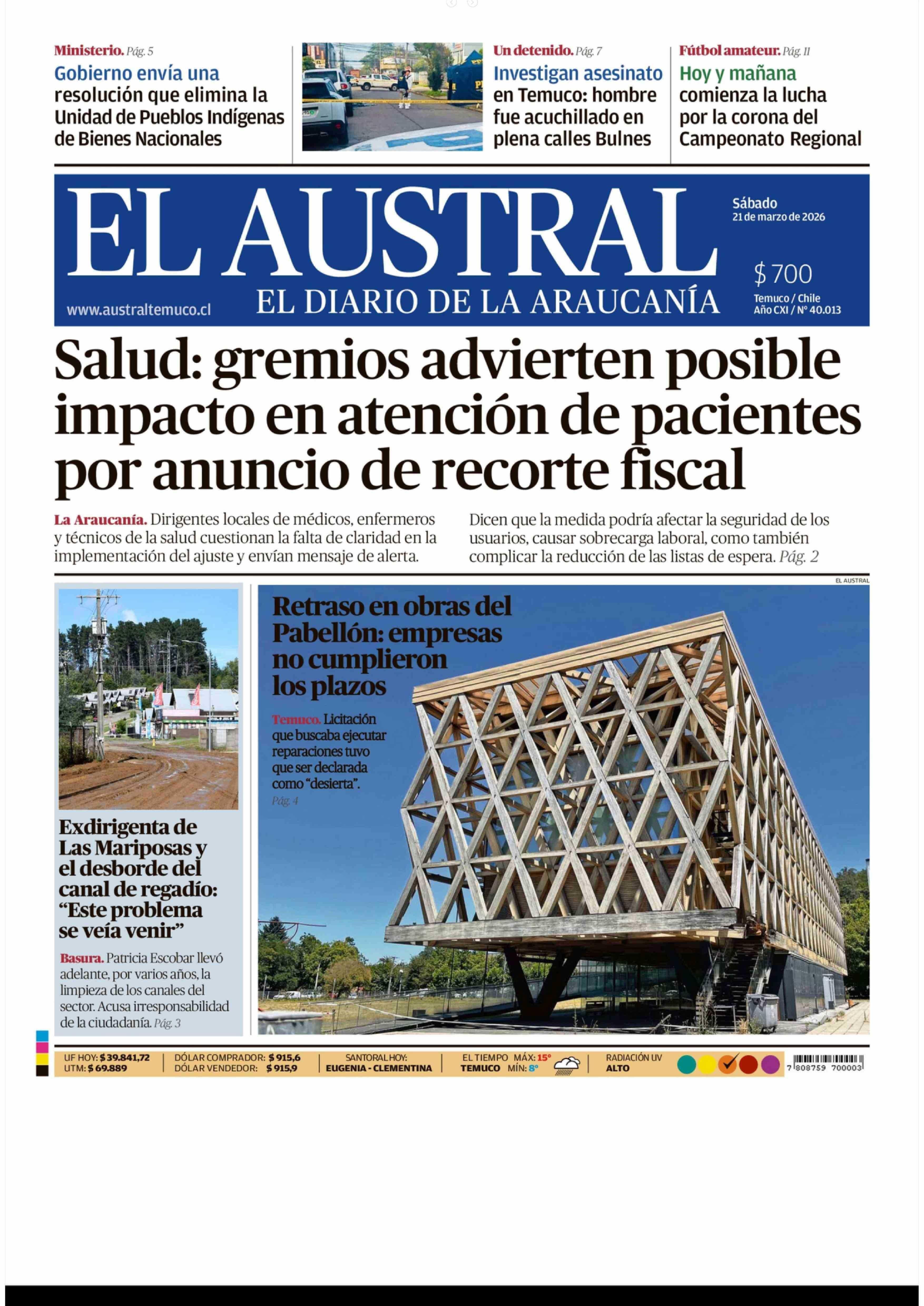 PORTADA EL AUSTRAL DE LA ARAUCANÍA CHILE